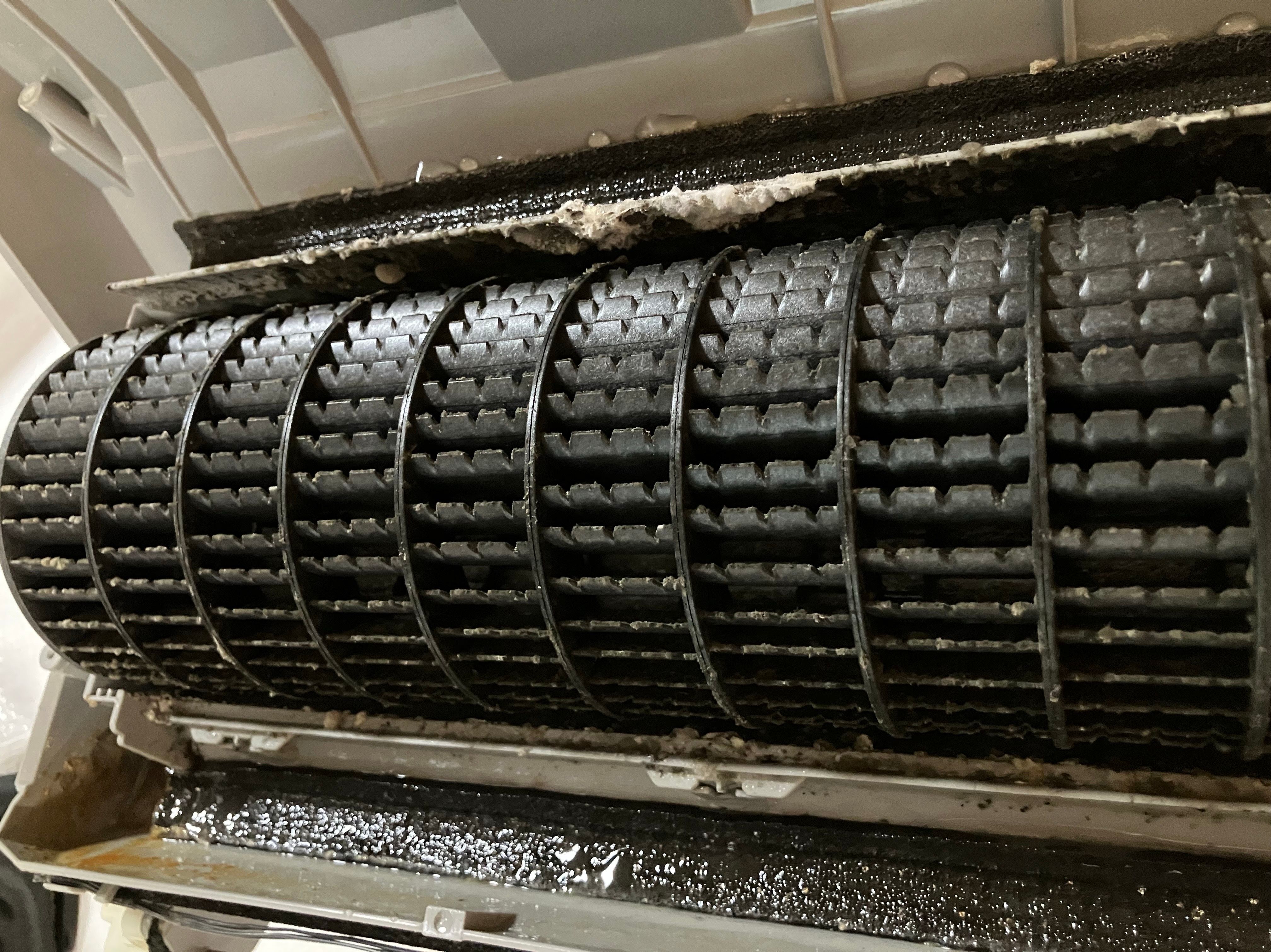 内部は毛・ホコリ・カビが混ざった汚れがびっしり…。