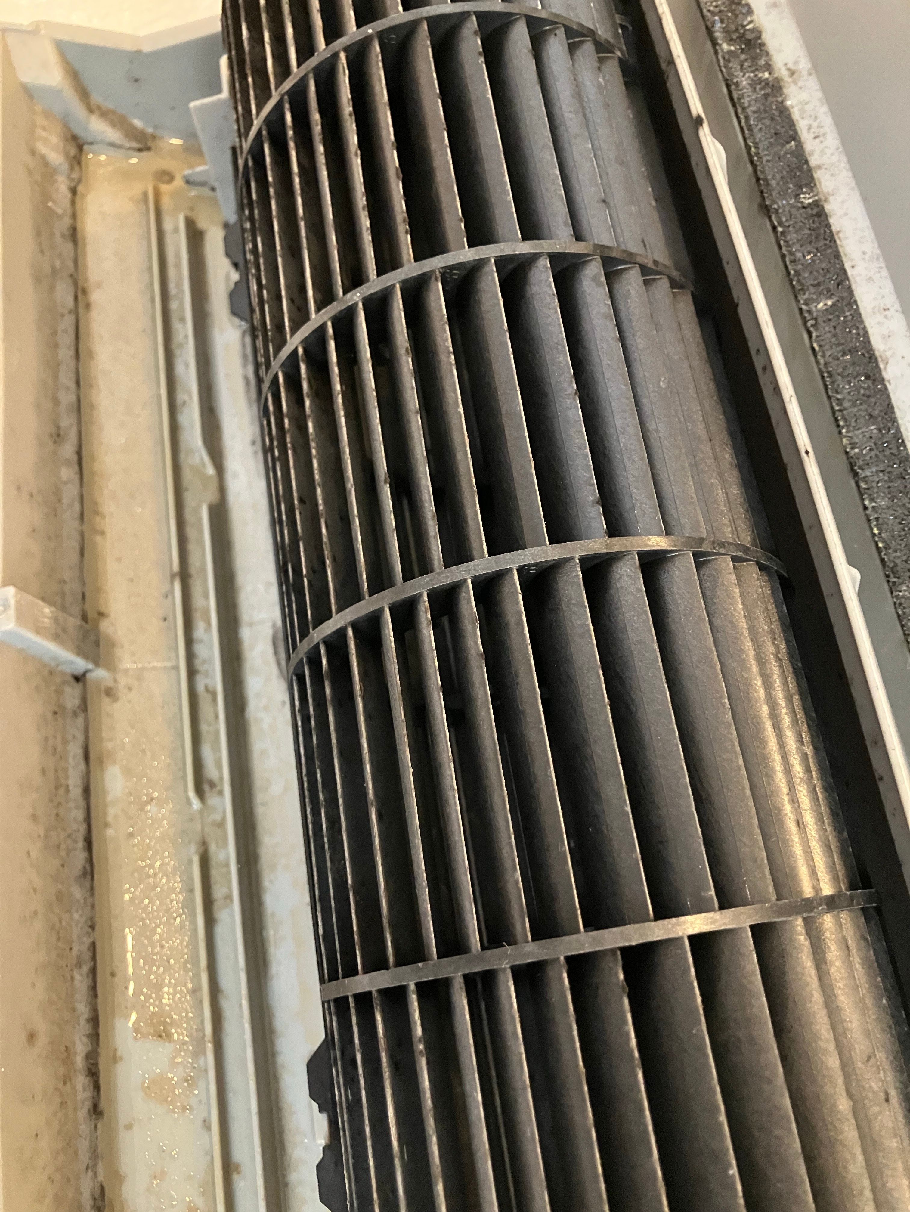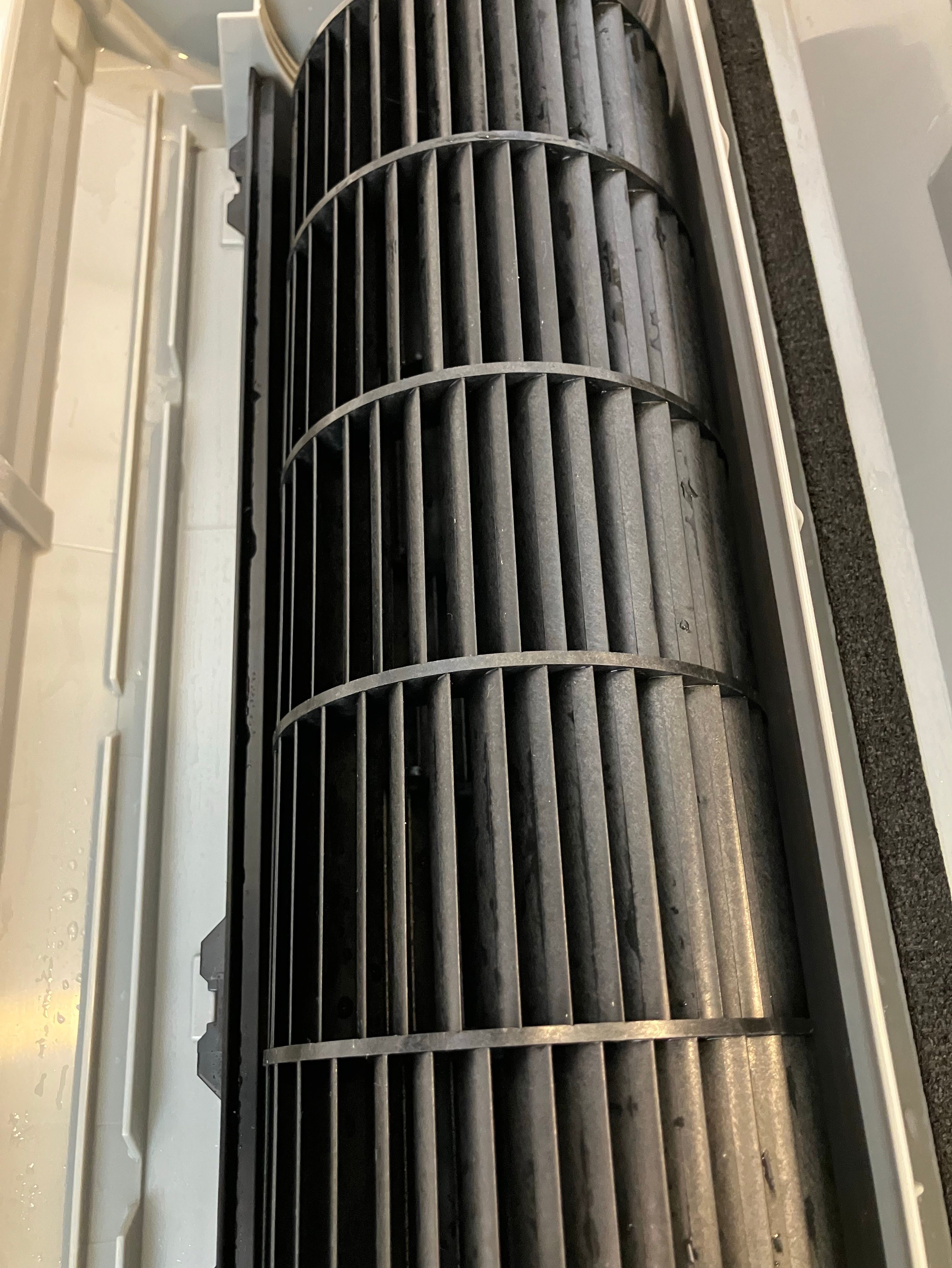 お客様からは「風がカビ臭い」「効きが悪い気がする」というご相談があり、完全分解洗浄を実施しました。