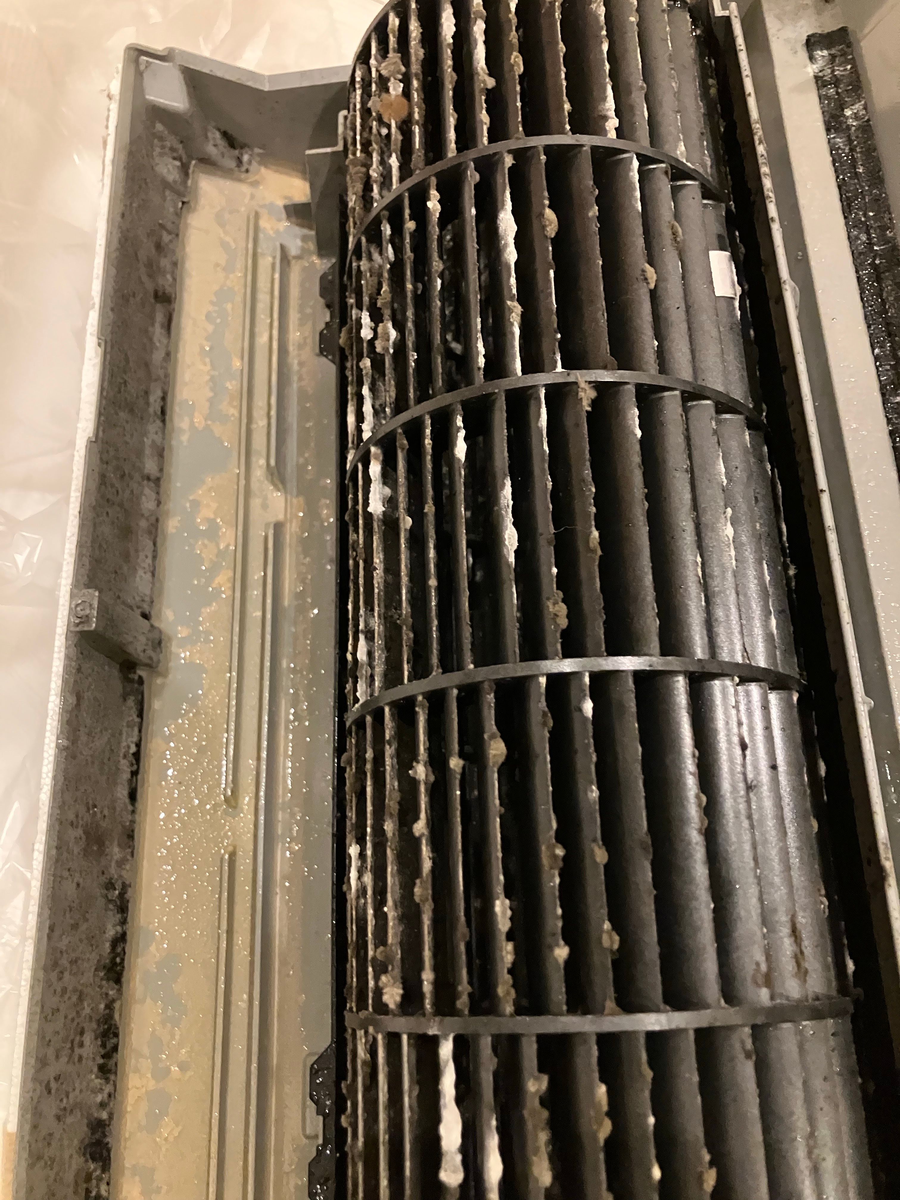 お客様からは「最近カビ臭くて眠れない」「風量が落ちた気がする」というご相談をいただき、初めての完全分解洗浄を実施しました。