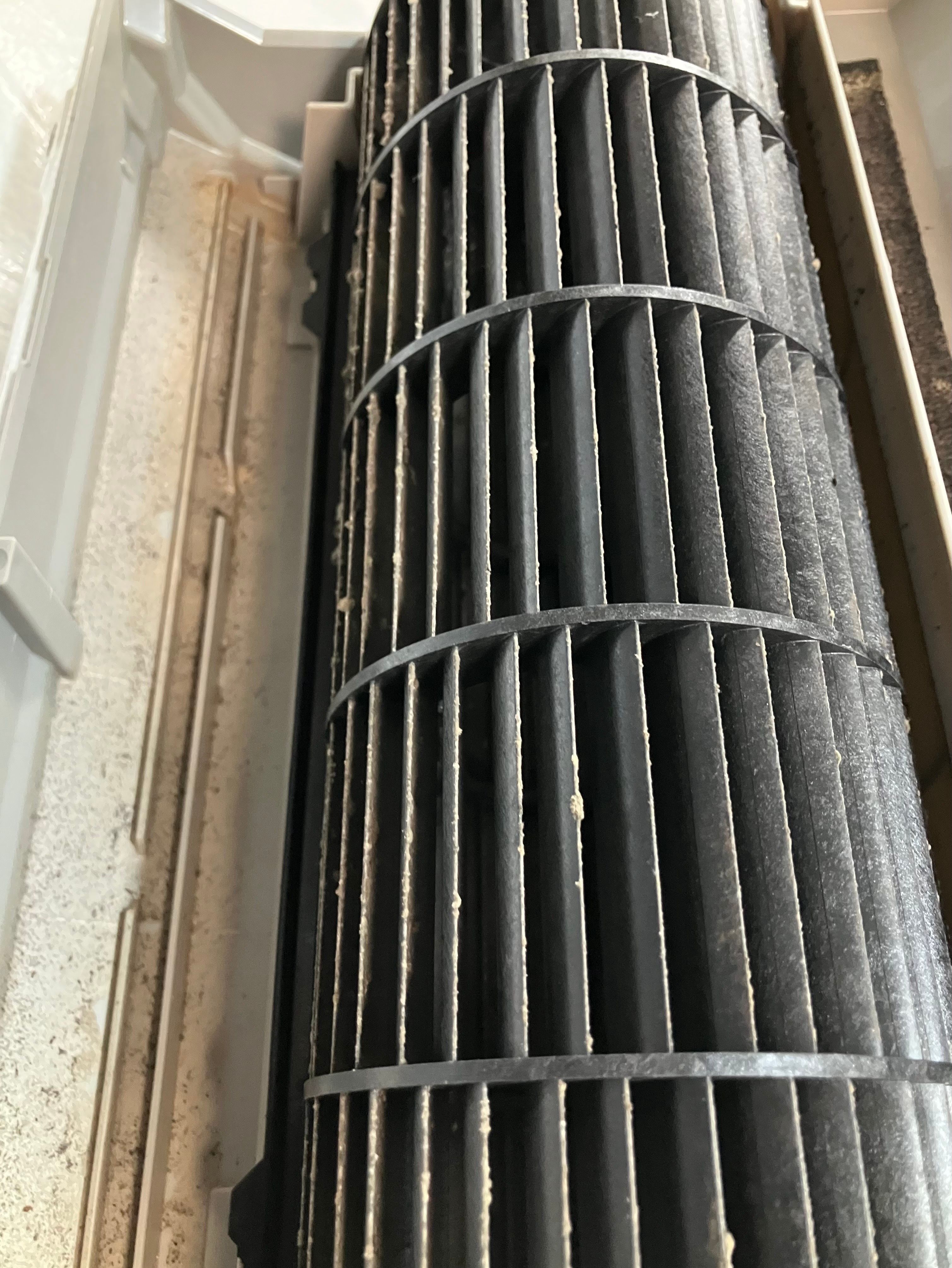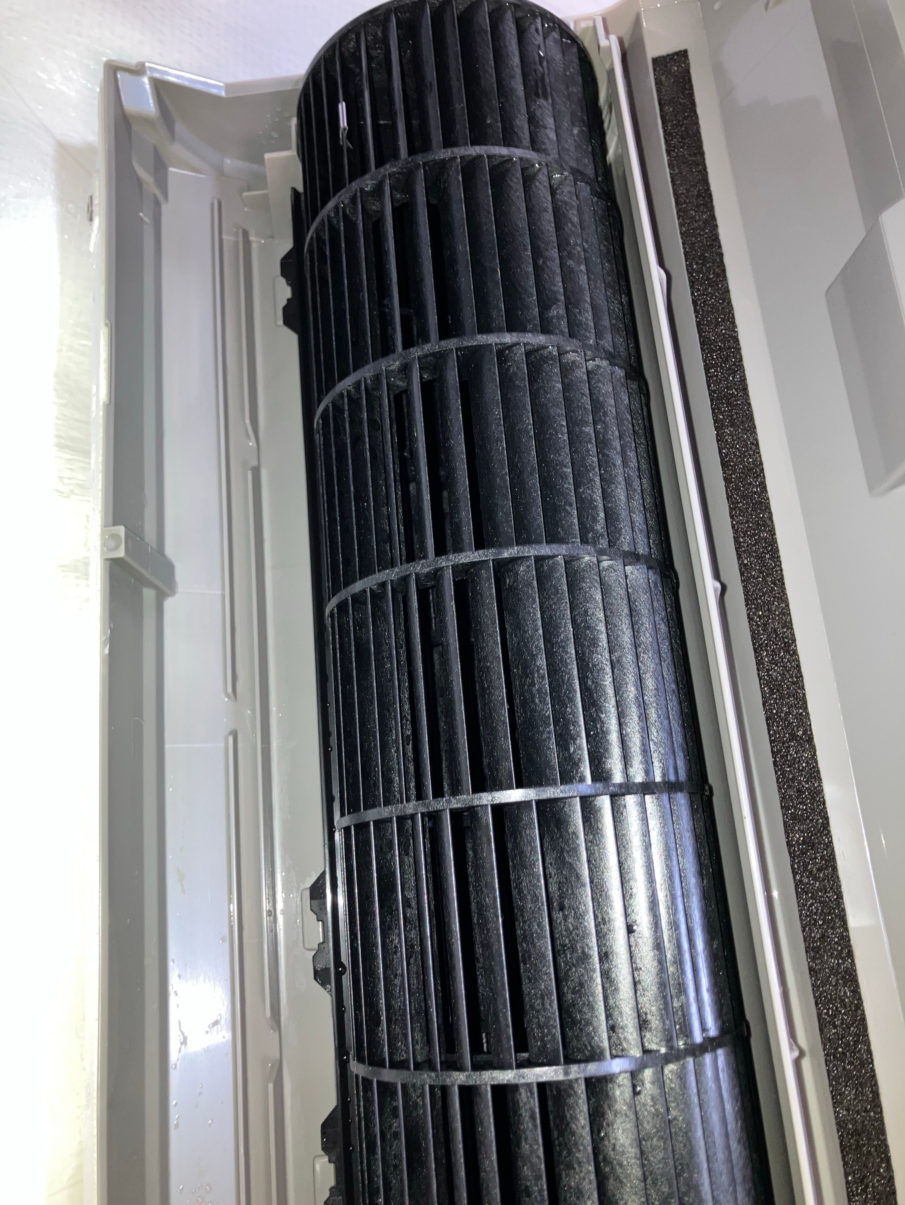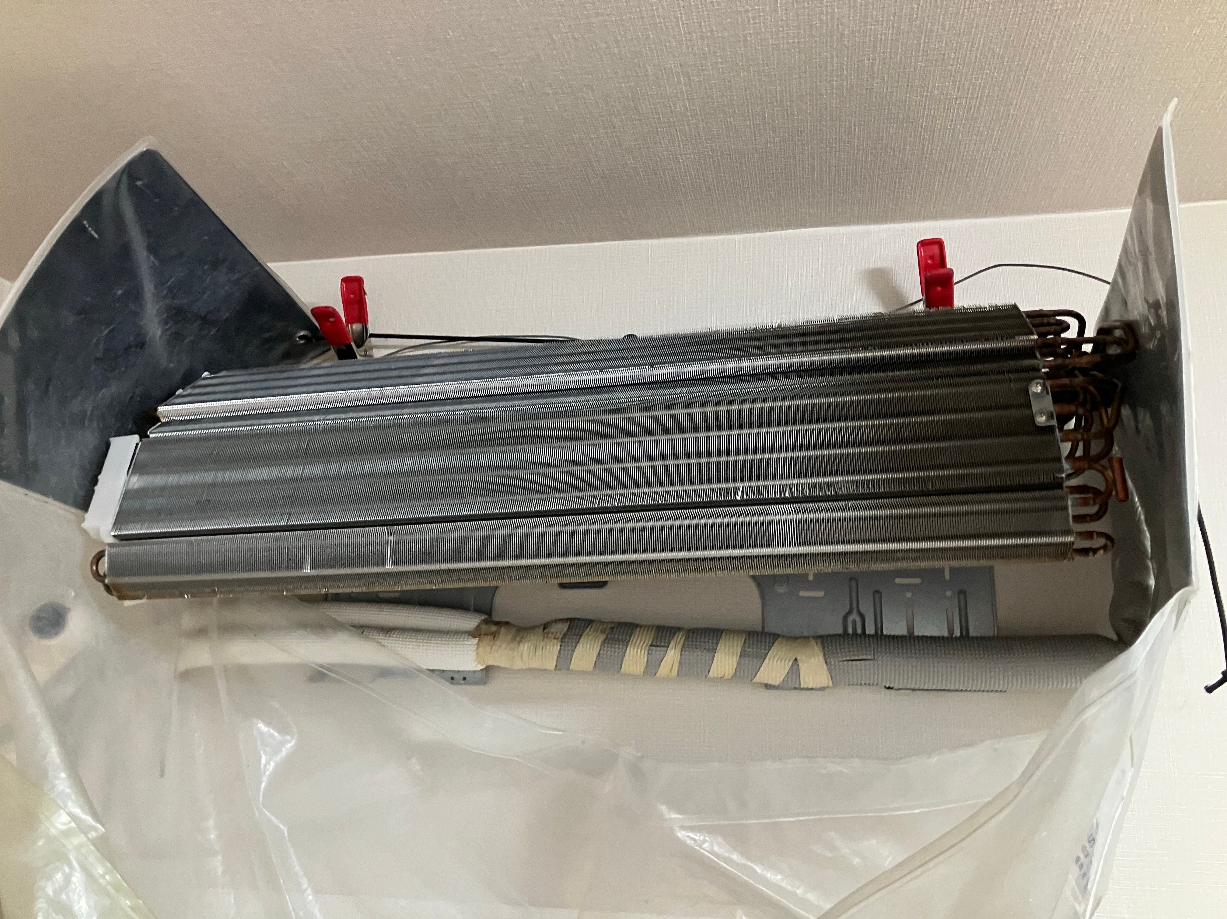 「冷房の効きが悪い」「カビ臭が気になる」とのことで、完全分解洗浄のご依頼をいただきました。