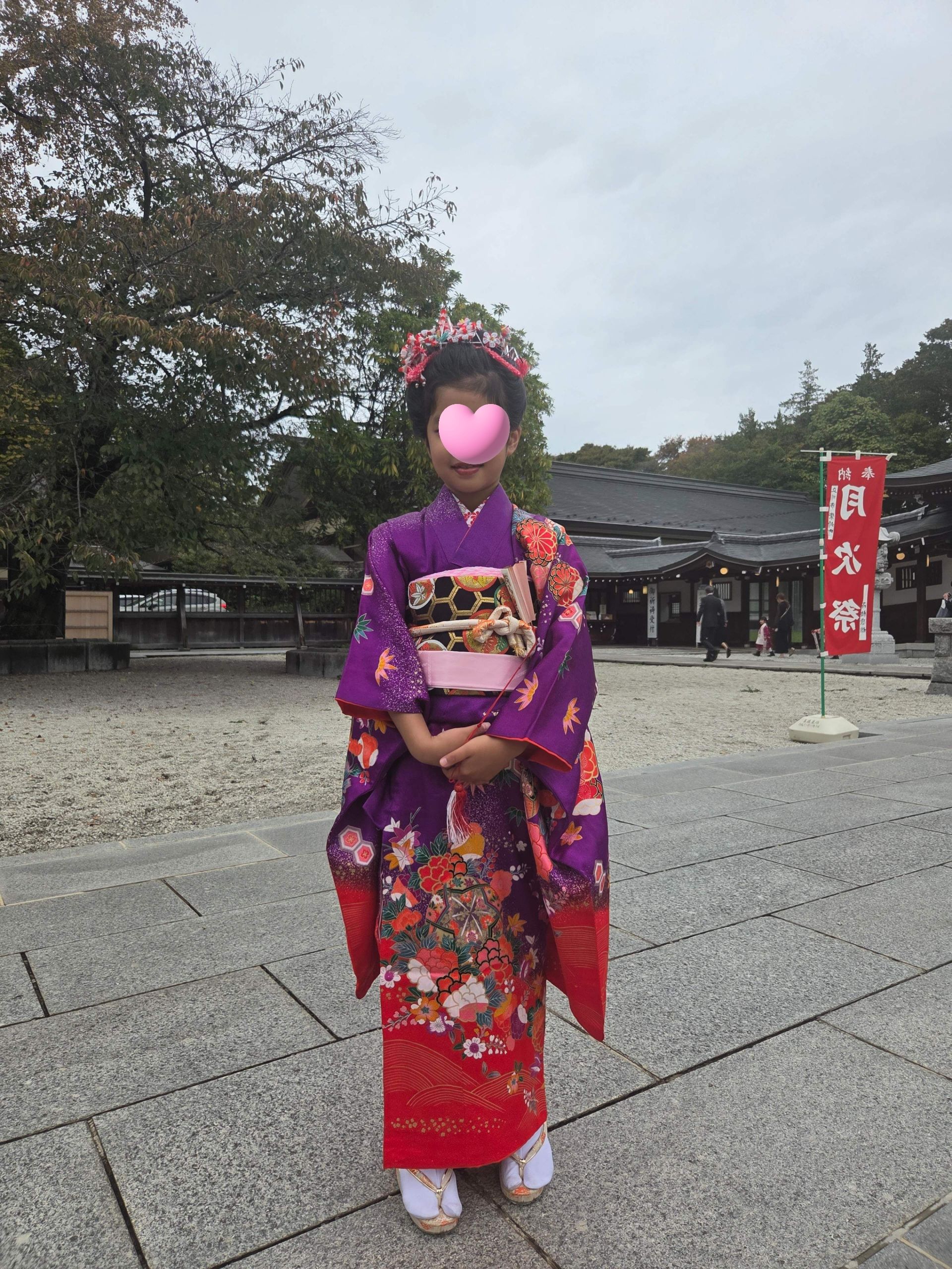 ご自身のお着物。紫色で大人っぽい感じのは美人さんでした。日本髪風がお似合い。お母様か素敵にお化粧して下さいました。