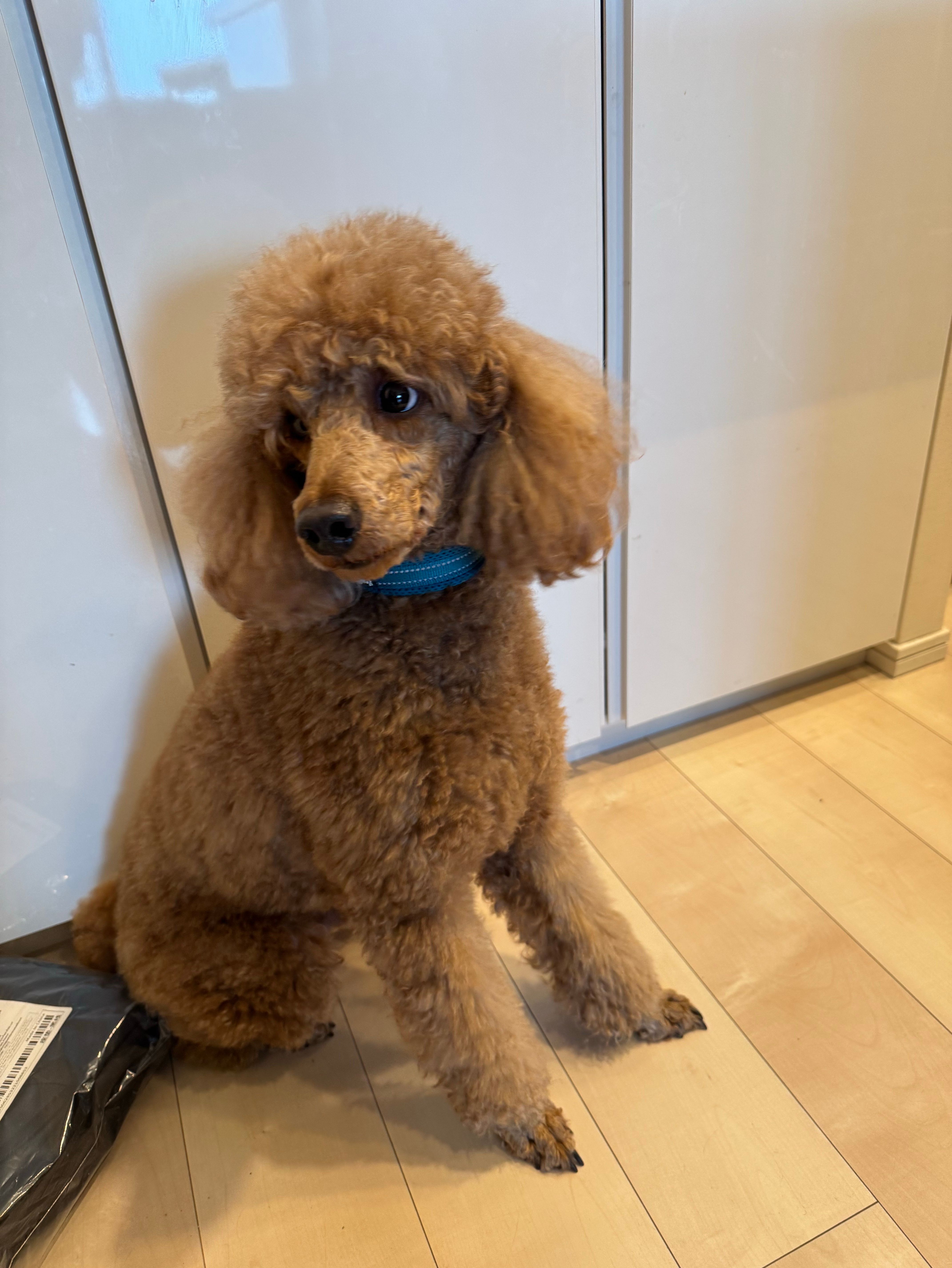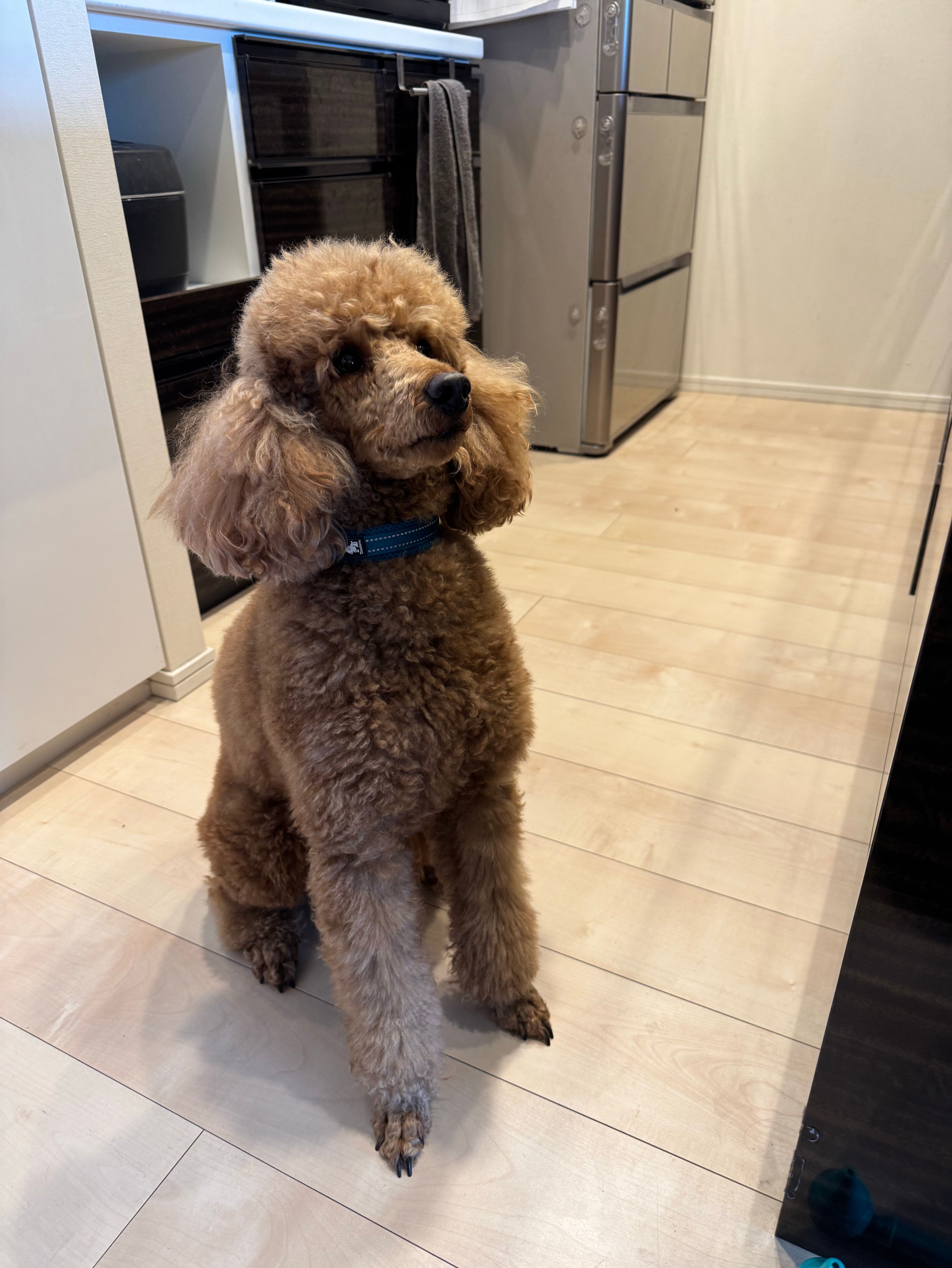 犬種はトイプードルなのですが、立派に9kgに成長しました!お名前はお子様の好きな絵本から頂いたそうです♪人には慣れてるみたいで、最初から寄って来てくれて