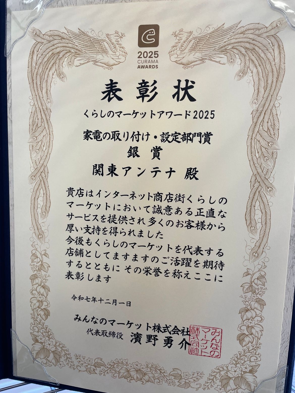 くらしのマーケットアワード2025 家電の取り付け・設定部門【銀賞】を受賞することができました✨🎉