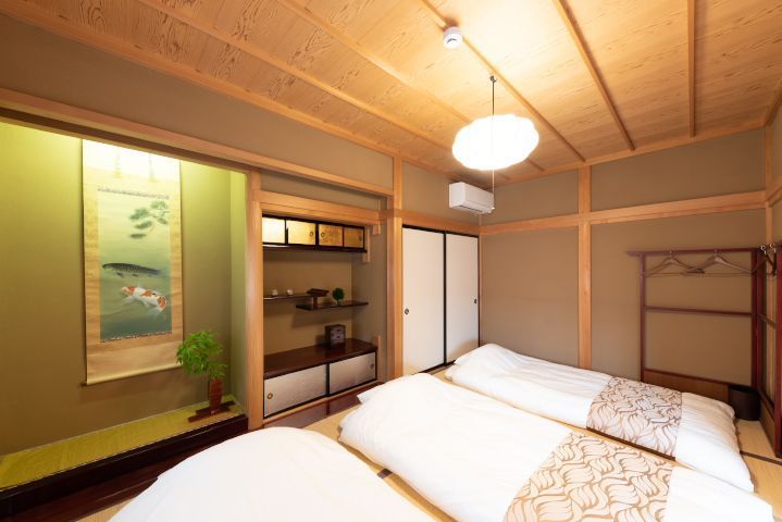 寝室は和室に布団でしたので外国からのお客様も日本の良い伝統を感じながら宿泊出来ると思います。