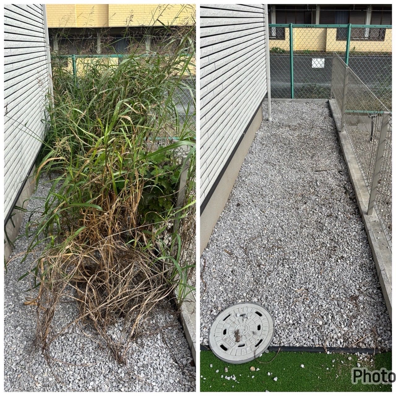 川越にて草むしりのご依頼です!このくらいの規模でしたら、30分程で作業完了いたします。時間がない、、自分でやるのが面倒、、ぜひ!すまいるクリーニングへご相談ください!年内に綺麗にして、新しい年を迎えましょう!