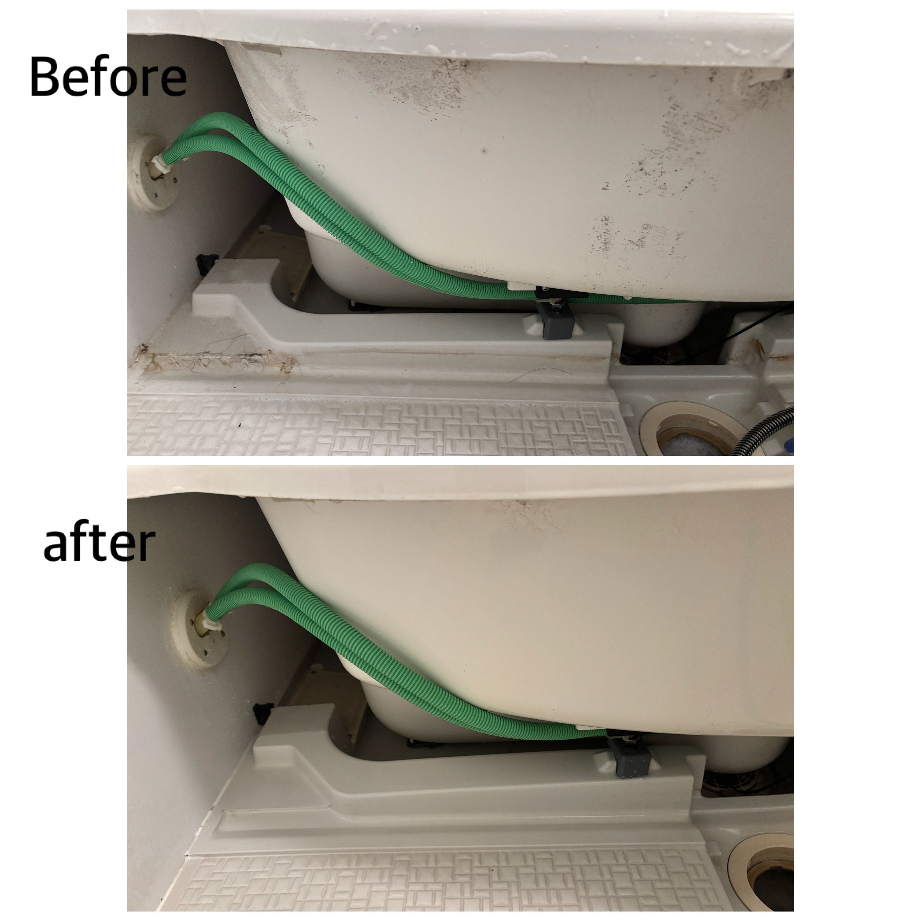 浴室は掃除するけど、エプロンまでやるのはめんどう、、エプロン内は換気が難しい為、そのままにしておくと、カビだらけになってしまいます。オプションで出来る、エプロン内高圧洗浄がおすすめです◎