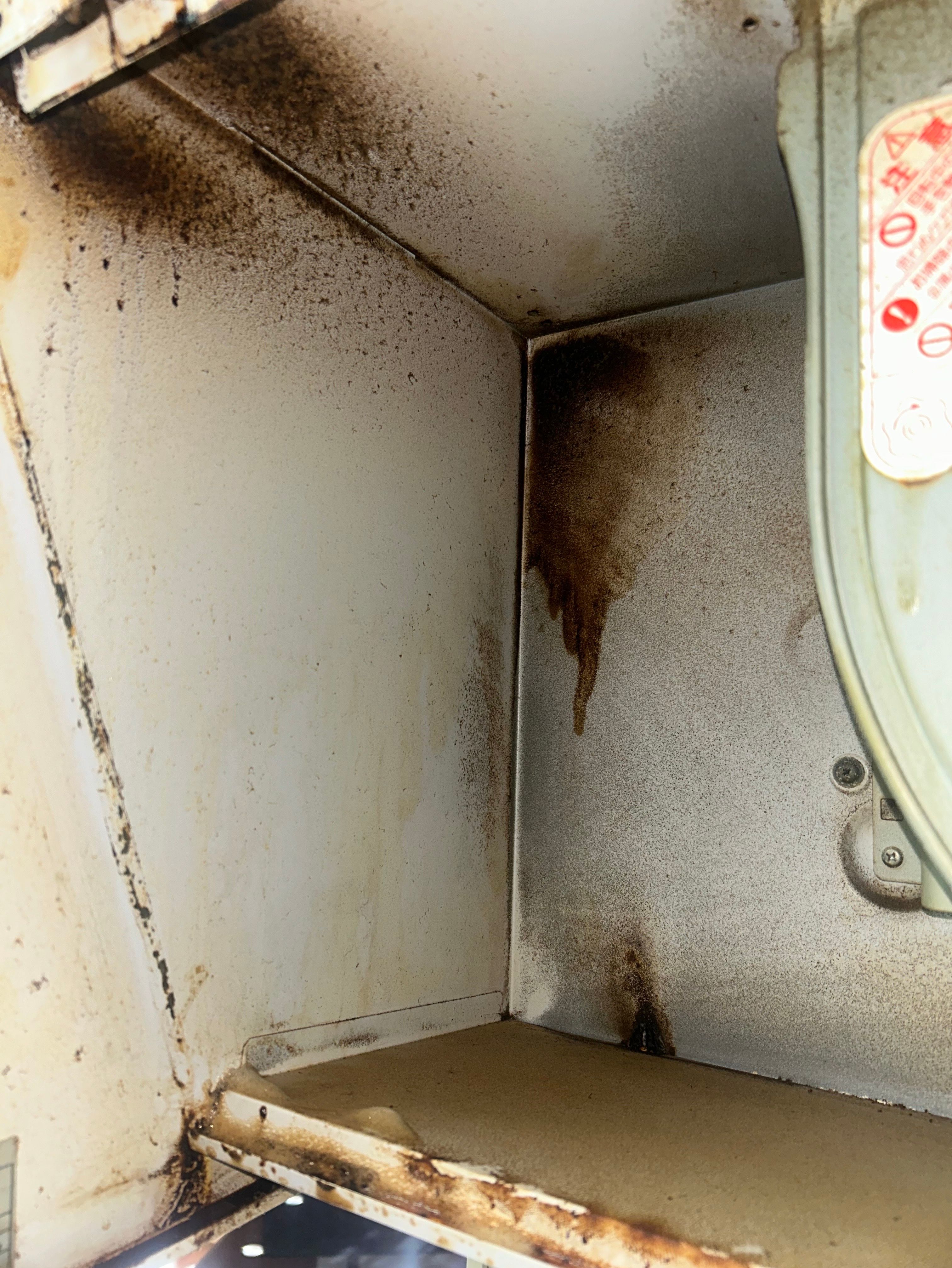 奥の方の油・ホコリの汚れためておくとガチガチに固まって落としづらくなります。年が明ける前に清掃しましょう!
