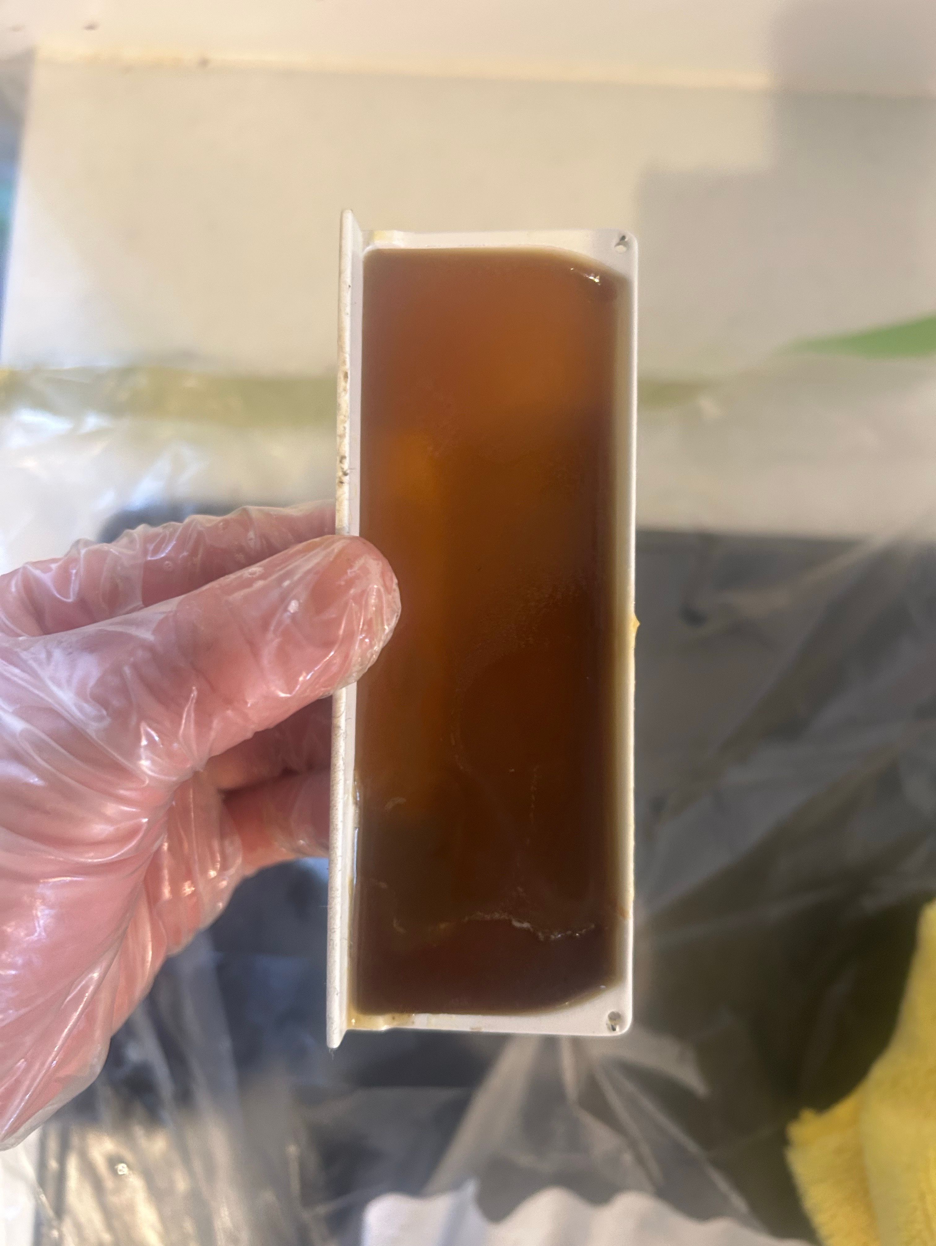 レンジフードのオイルキャッチ部分。ここは意外とみなさん見落としがちで油がそのまま残って、溢れてしまったりしている事が多いです。臭いの原因、周りの汚れの原因にもなるのでここも綺麗に掃除しましょう!
