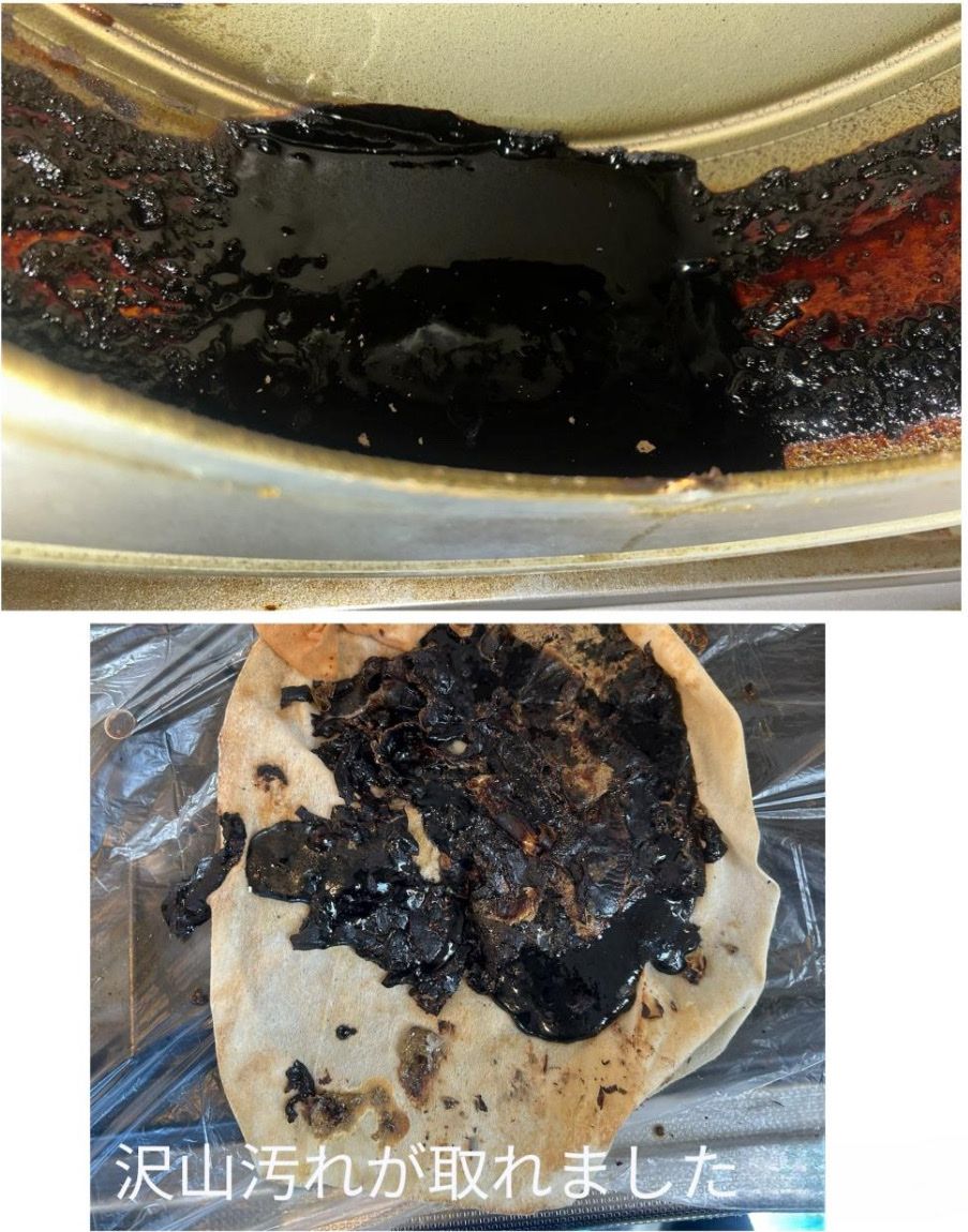 中の状態を確認すると、全体が油とホコリで汚れており、こうなってしまうと換気効率の低下・悪臭・故障の原因となってしまいます。