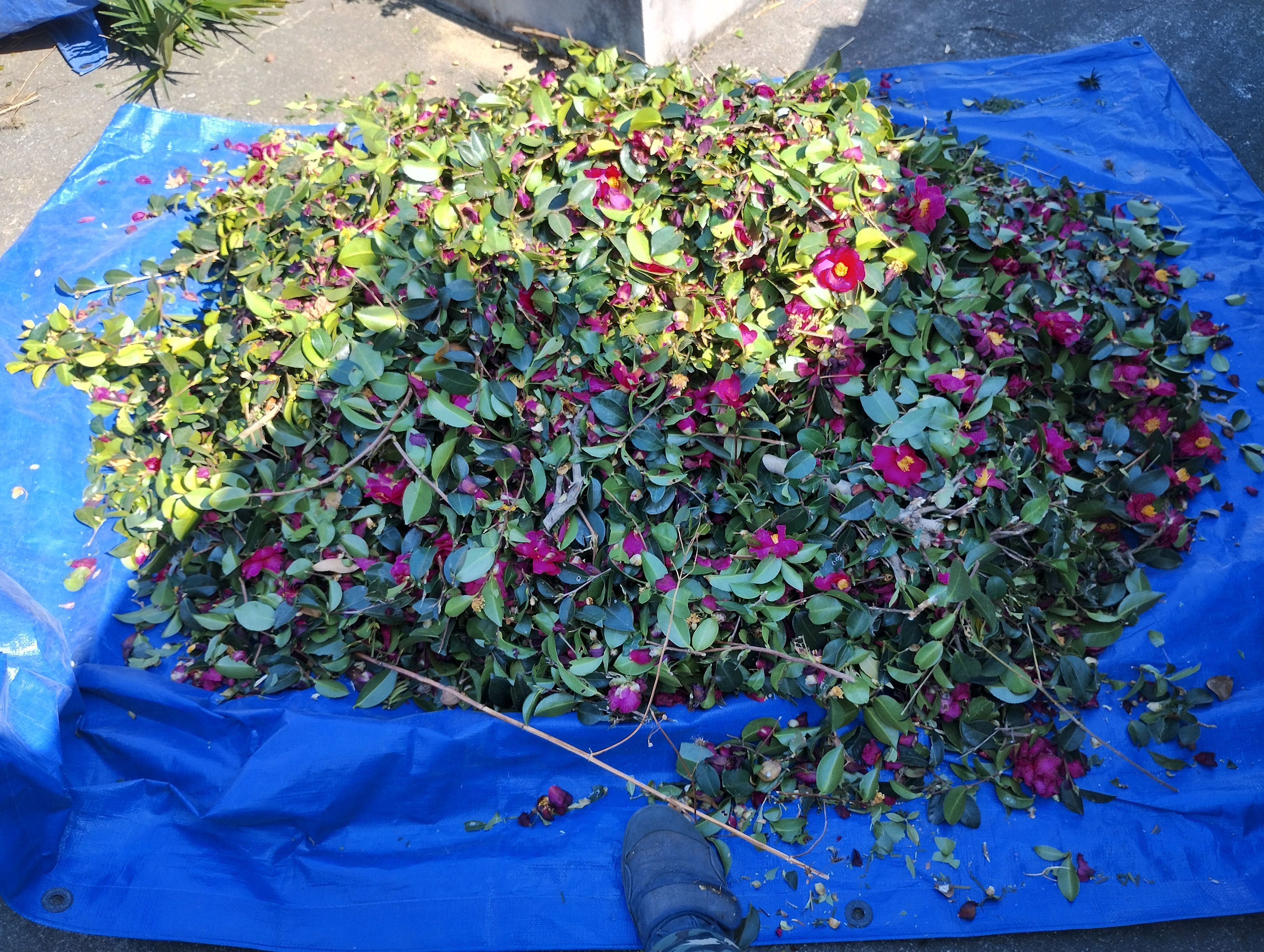 ツバキを剪定していると