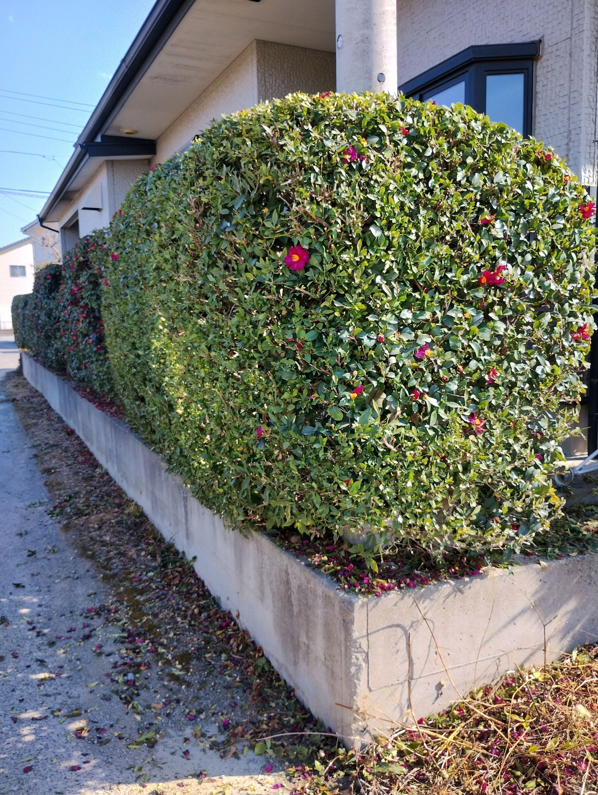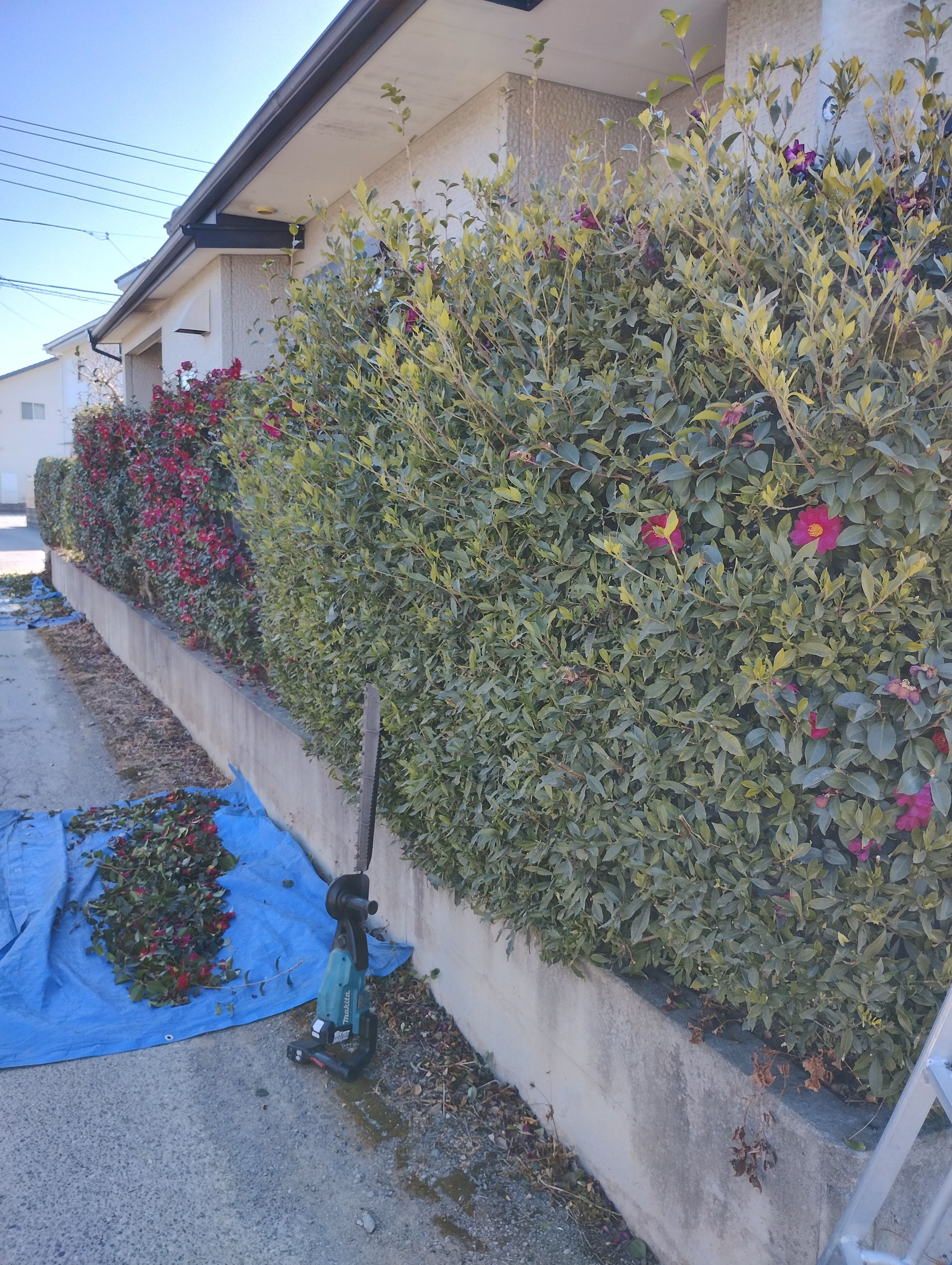が終わり、南側のツバキの生垣剪定が