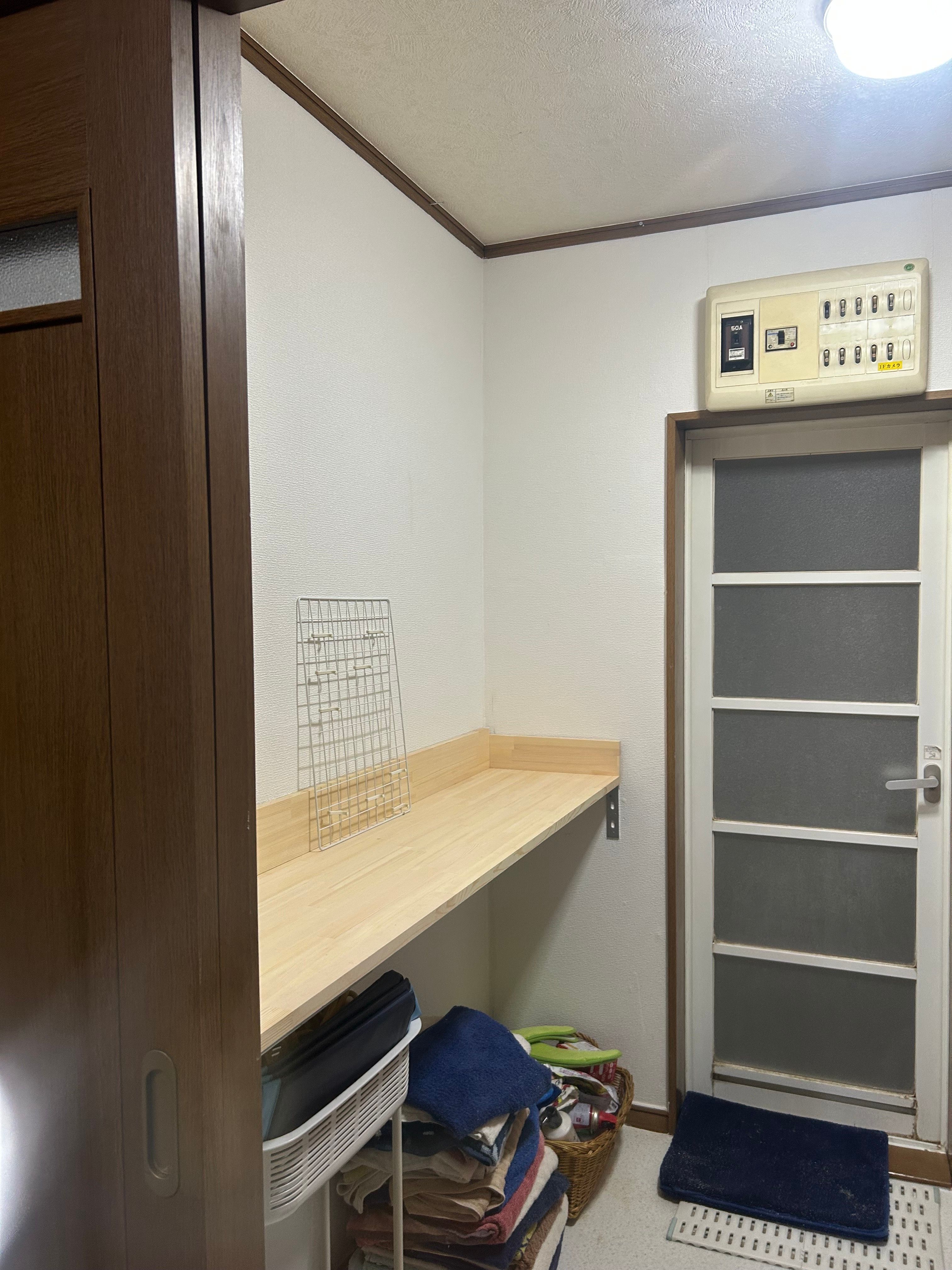 最後に、クロスの張替え、使い勝手を考えてサービスで棚も作成しております。