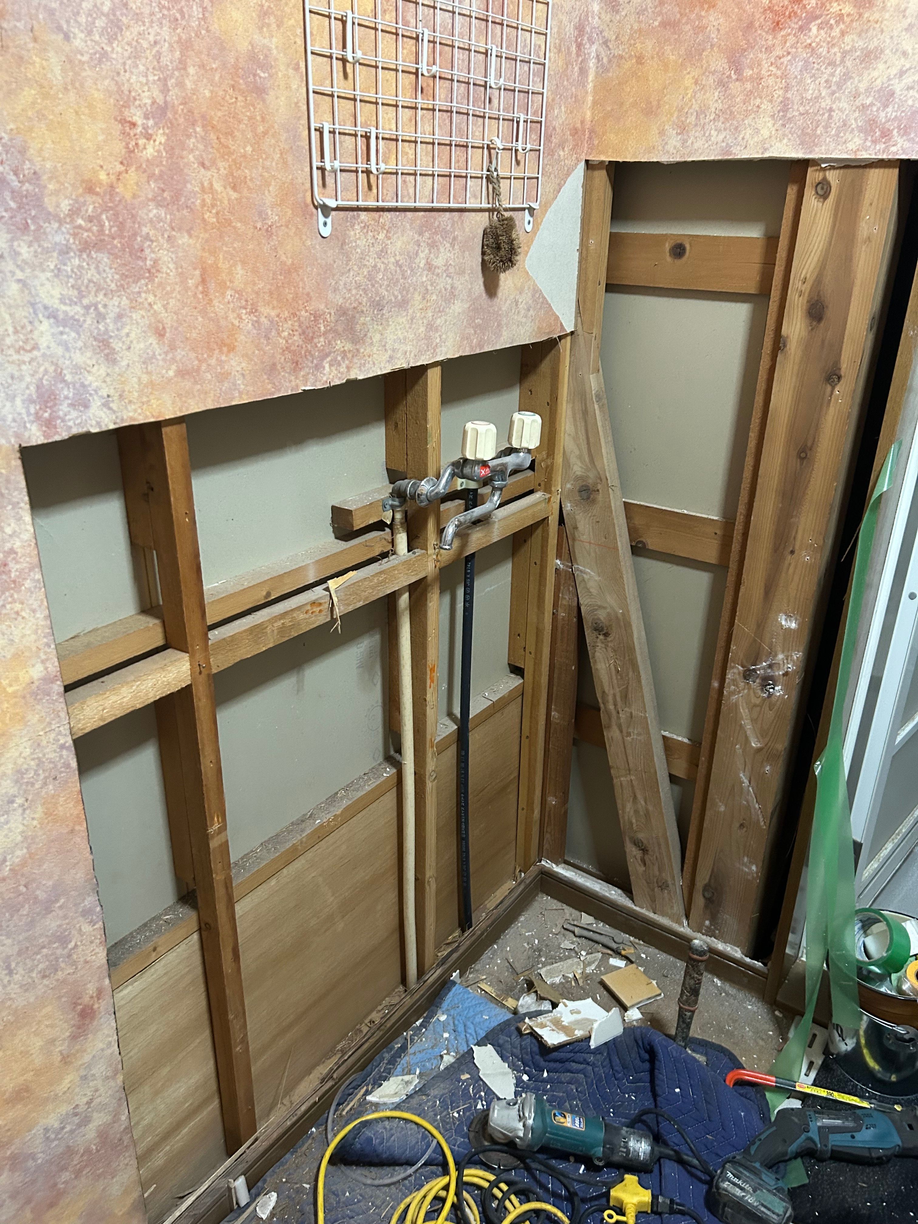まずはミニキッチンを撤去し、漏水箇所の確認と止水対応をしております。