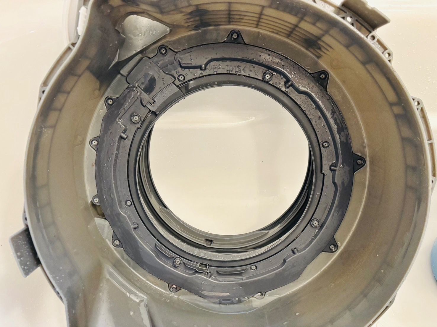 クマッペでは、専用の道具と技術でドラム式洗濯機を分解し