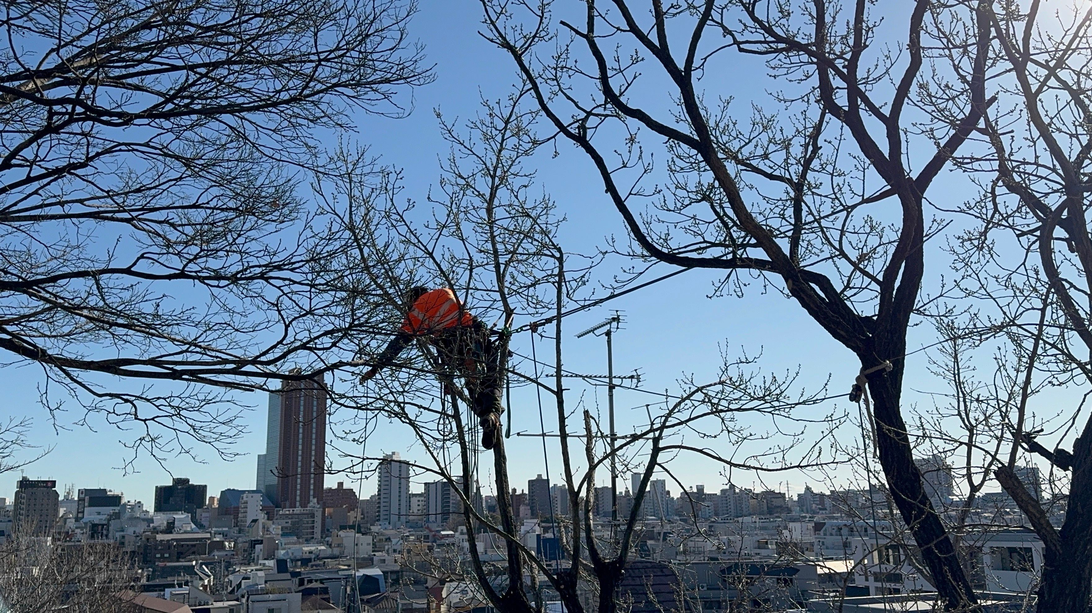 もし高木の剪定をご依頼いただく際は、ぜひ作業の様子を観察してみてください。ロープがきちんと管理されているか、たるんでいないかを見るのも興味深いかもしれません。
