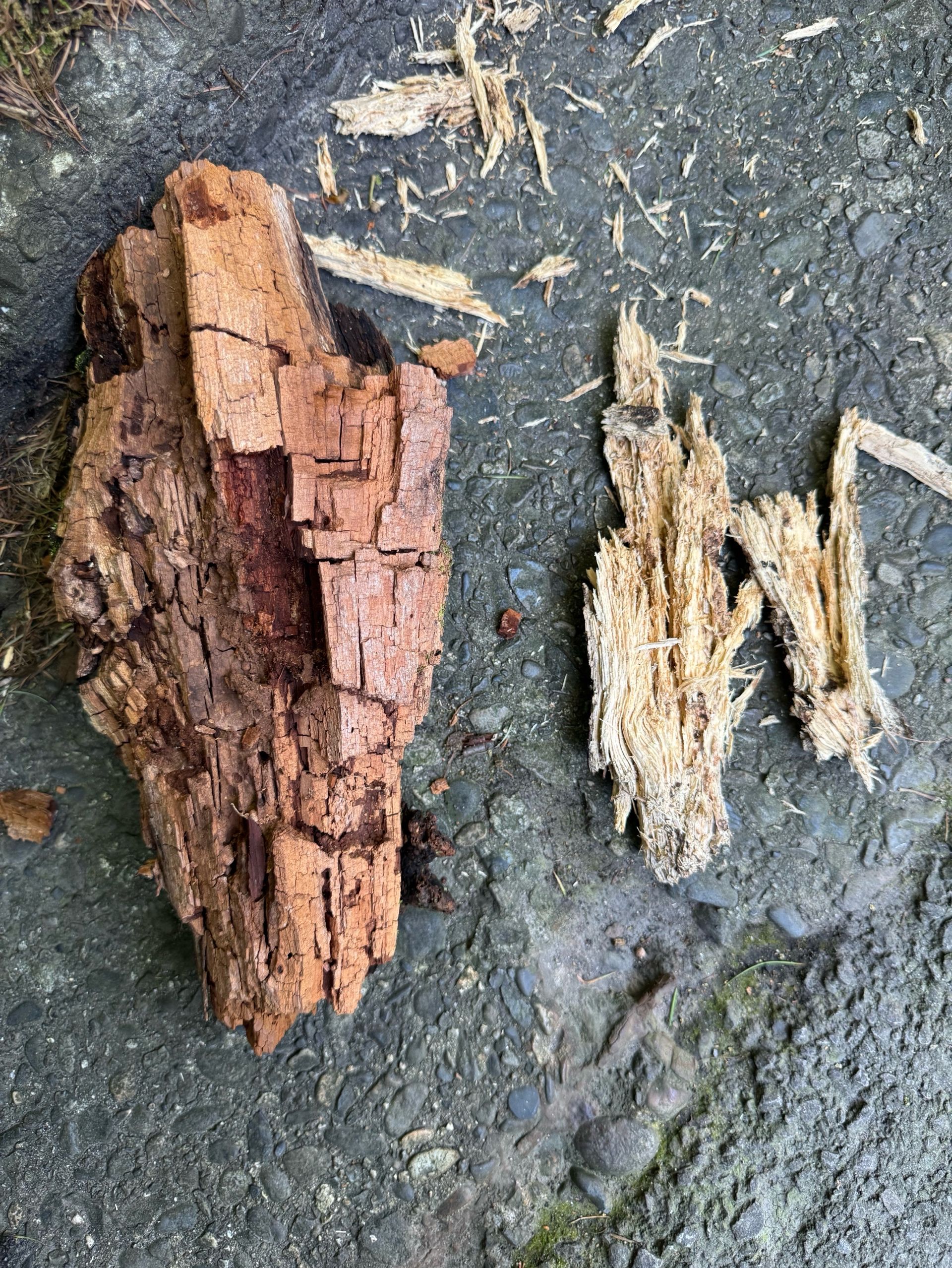 菌が分解するものが違いますので、コロコロと崩れて茶色いのが褐色不朽菌、ブヨブヨと崩れて白いのが白色不朽菌と覚えておくと良いです。