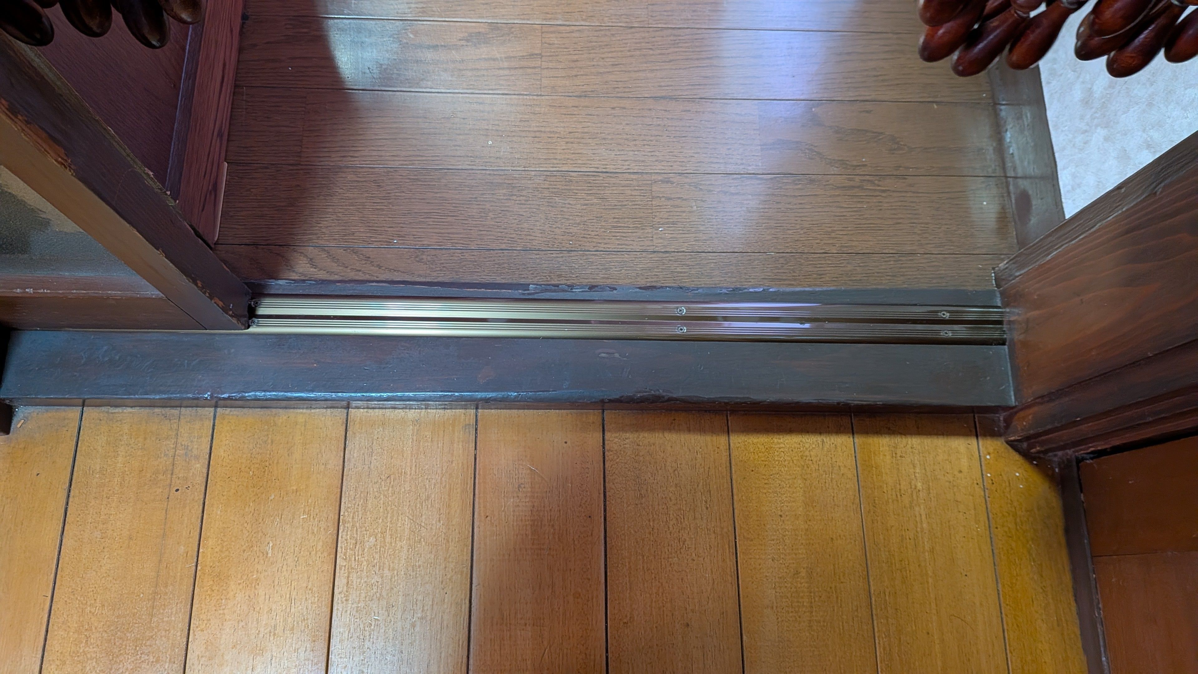 現地調査をしたところ、従来型の甲丸レールがついていて、歪みもひどく戸を動かすとガタガタと結構な音がする状態でした。