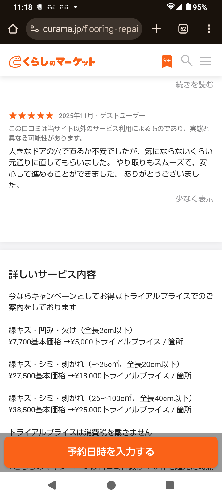 くらしのマーケットからのご依頼ではありませんでしたが 、先日 施工 させていただいたお客様からありがたい 口コミをいただきました