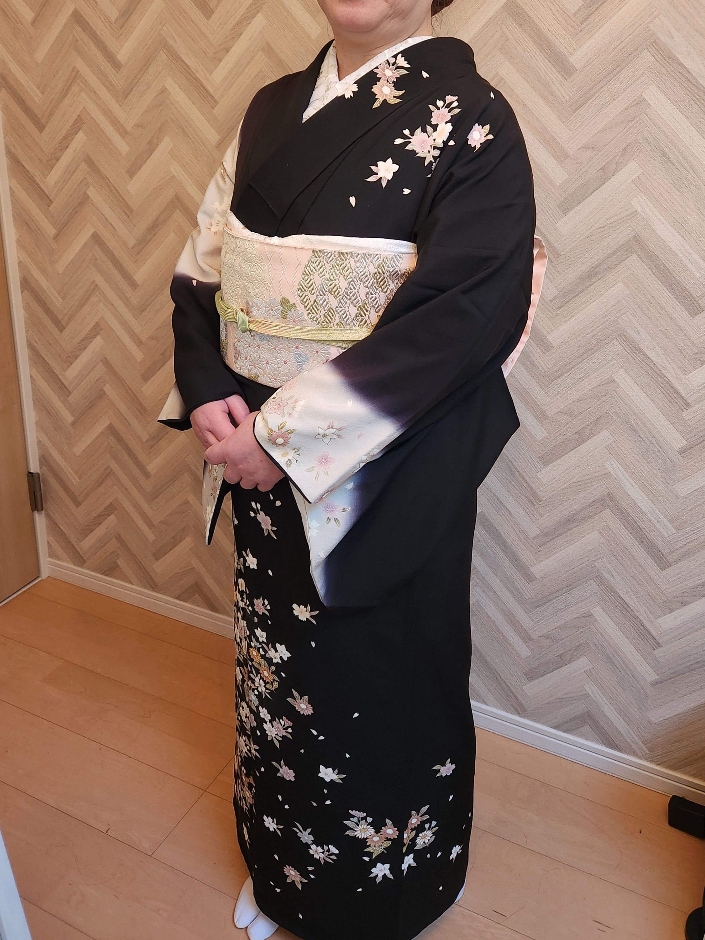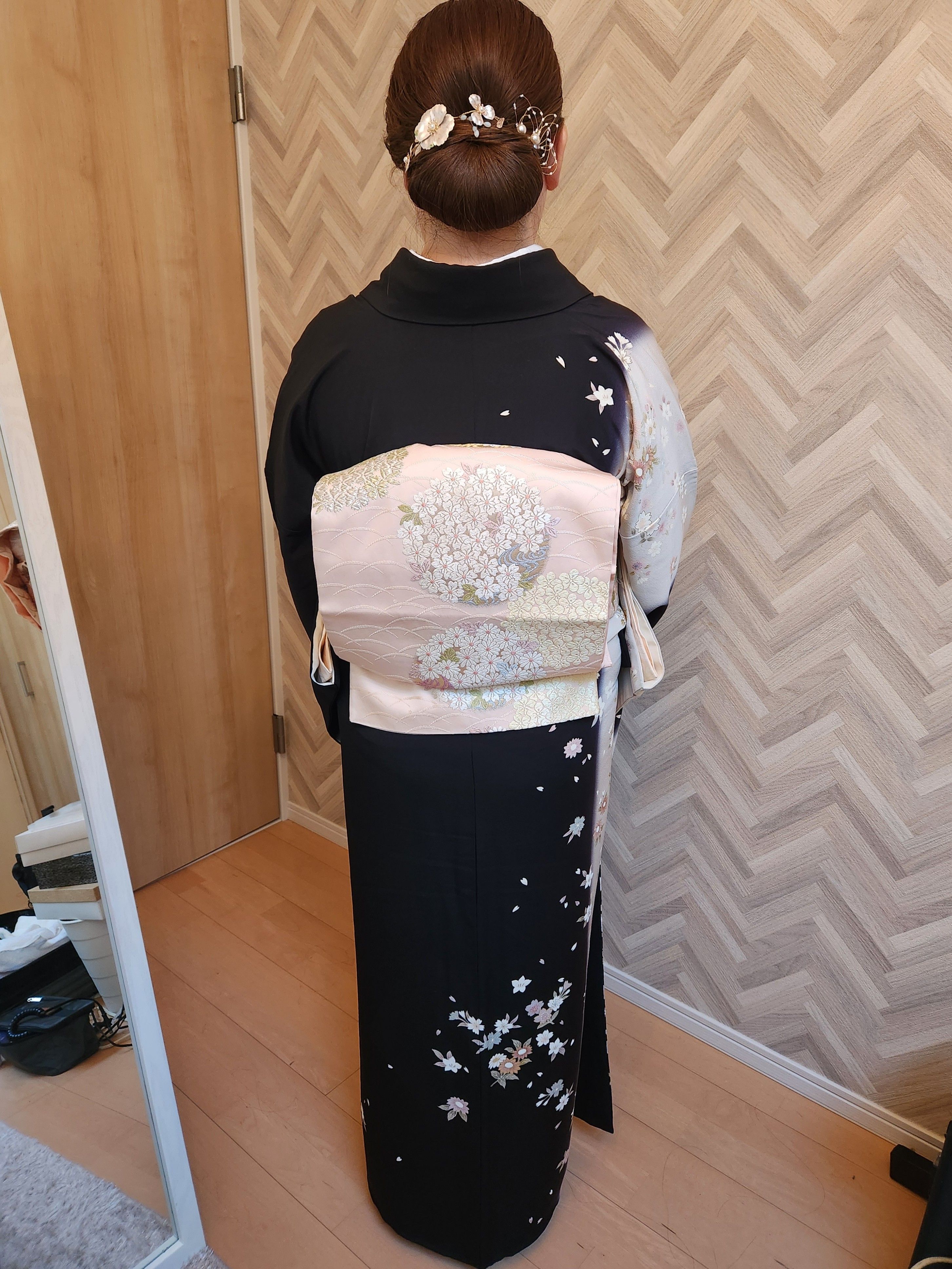 とてもシックな訪問着でした。縦のラインは着痩せ効果もありますね✨かっこよく着こなせるよう、髪型も相談してモダンにおまとめしました。髪飾りがまた色っぽくて素敵でした。この度はご依頼ありがとうございます。