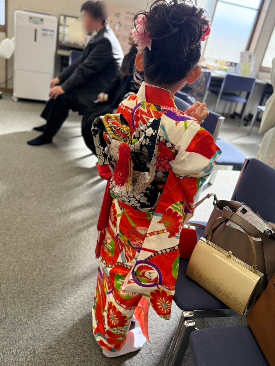 お仕事やご家庭の都合で七五三のお祝いのタイミングは様々です。お天気が良かったのでそれだけでも二重丸(*^^*)普段しないヘアスタイルキリッとした表情にとてもアップが似合ってて可愛かった^^寒くて泣いちゃったって思い出もいつかの笑い話になりますように。本日もおめでとうございます。