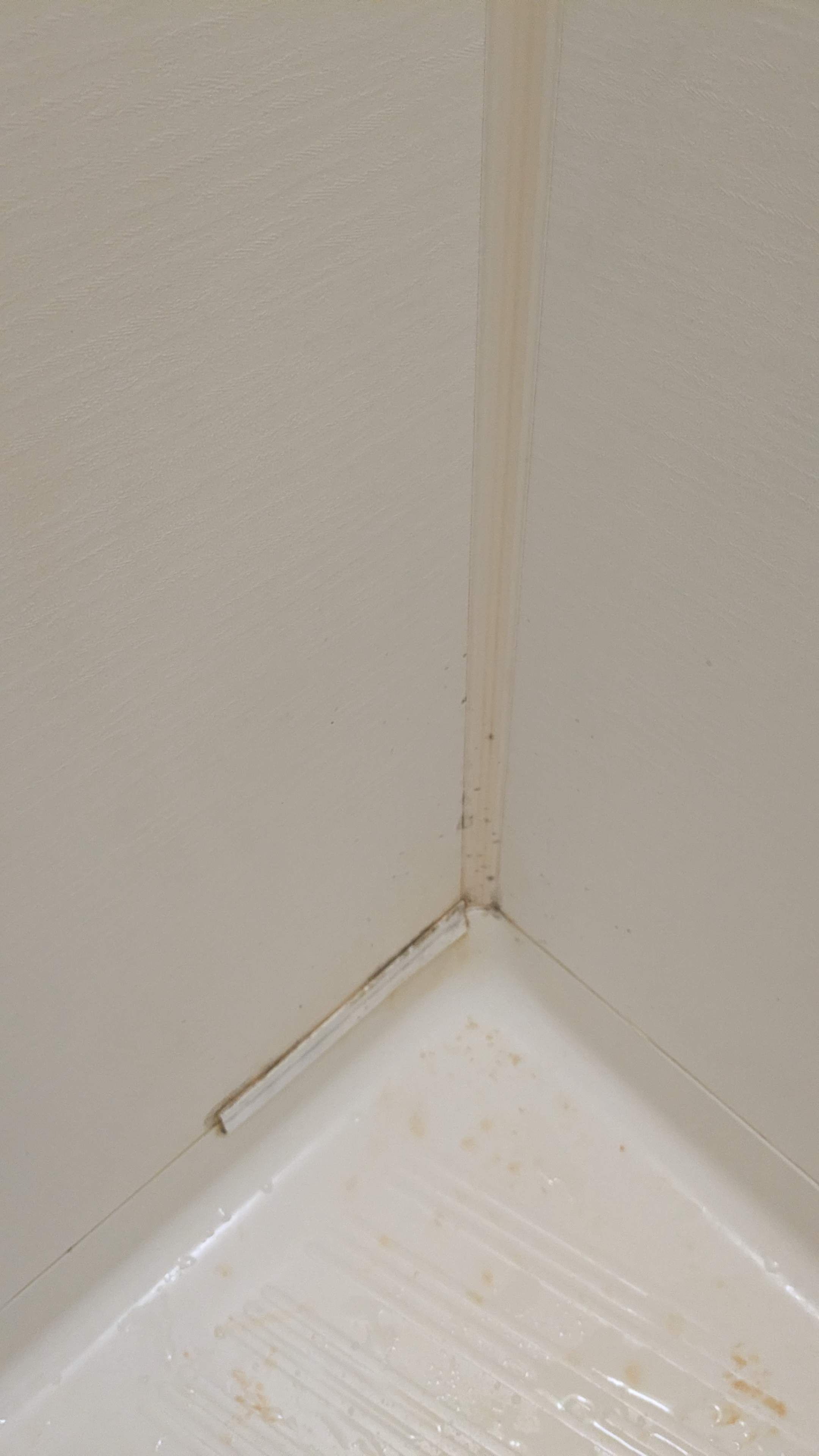 今回のお客様はカビを気にされており徹底的に落として欲しいとの事でした。天井や四隅にカビが付着、また、浴槽まわりの水アカや石けんカス、また、天井や換気扇には湿気によるカビや埃が溜まっており、ご自身での掃除は難しい状態でした。こうした汚れは、見た目だけでなく、臭いやカビの原因になります。