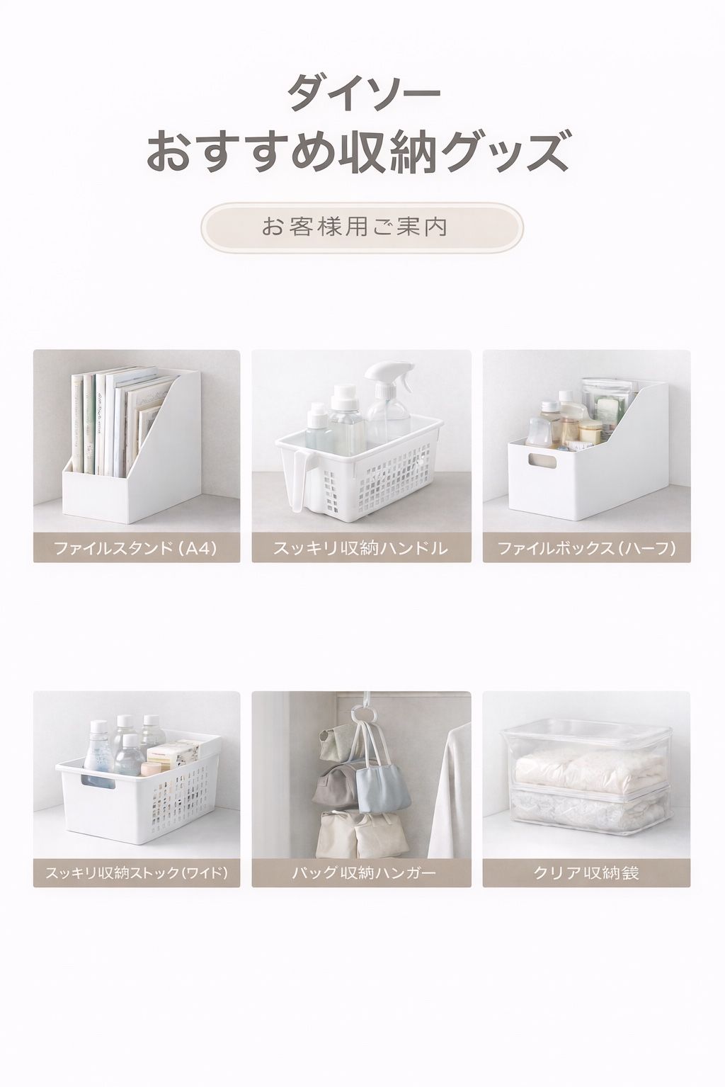 よく使っているダイソーの定番収納グッズ6つをご紹介します。