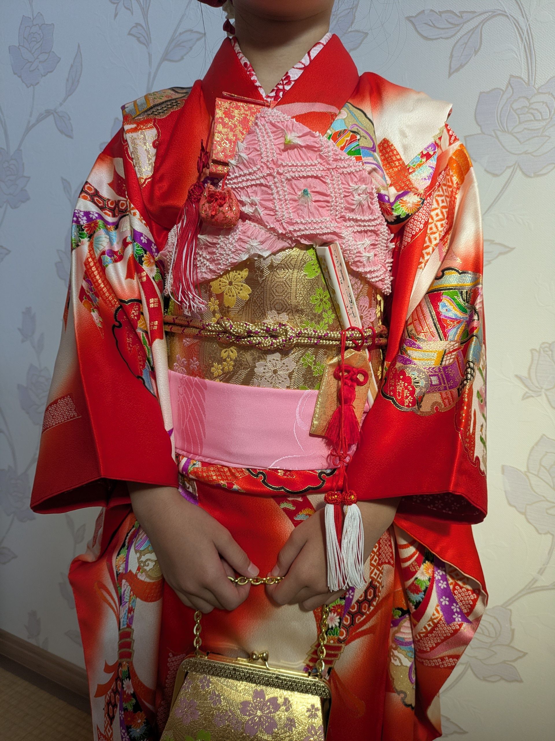 7歳のお嬢様。このお着物はお母さまがお召しになったもの。おばあさまが大切に保管なさっていたんですねぇ。とってもきれいな状態でした。こうして受け継がれていく着物を見ると着物好きはグッと来ます。物怖じしない元気なお嬢様とのお話も楽しく、幸せなお着付け時間でした。