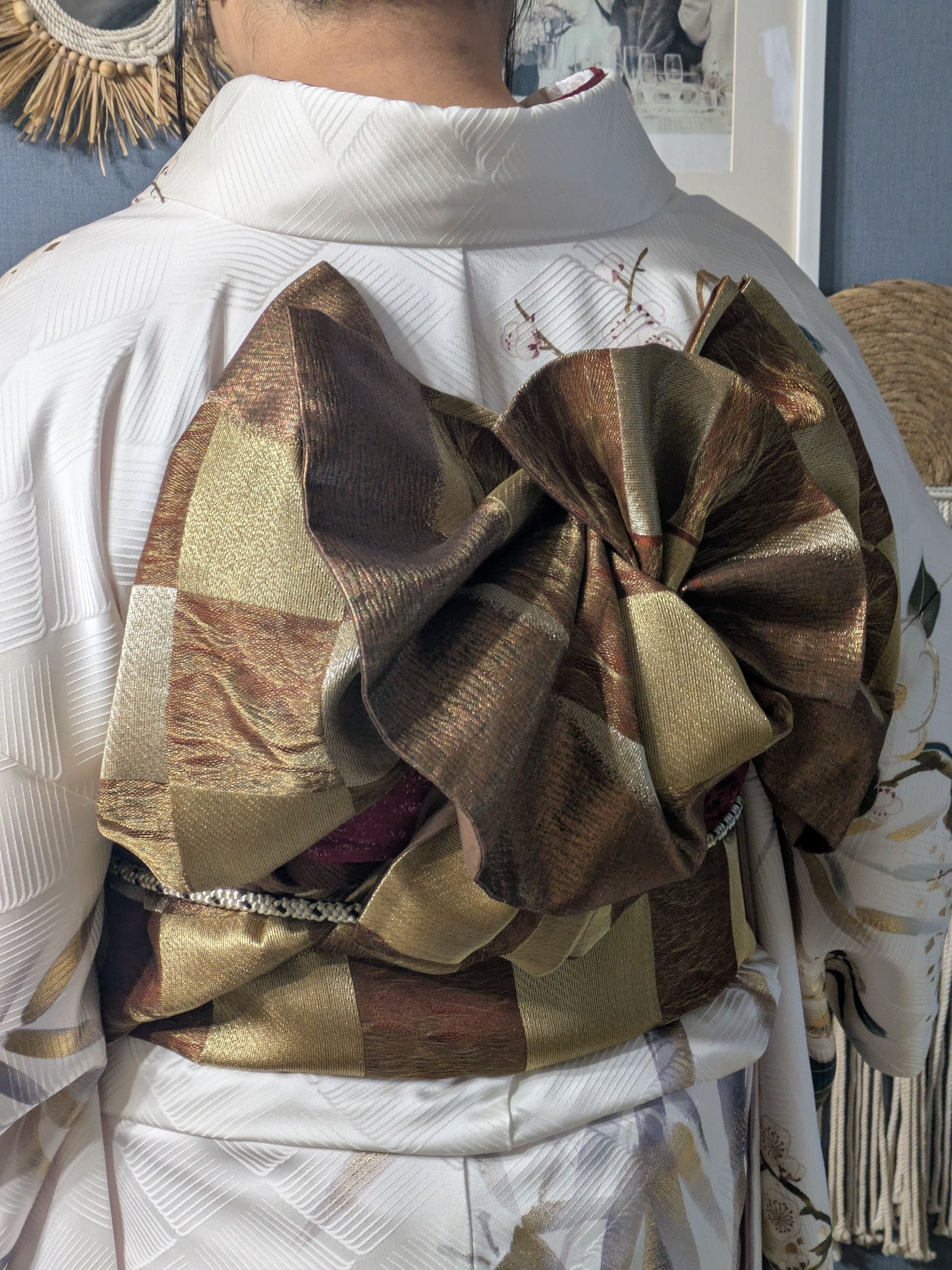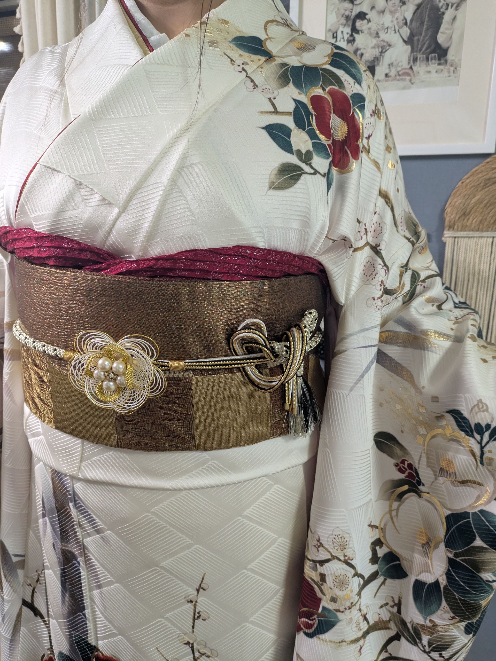 お嬢様とお母様で自力で着付けを試みられたものの難しく、12月初めにご依頼いただきました。自分で着ようとされるなんて素晴らしい!なかなか出来ない事です。