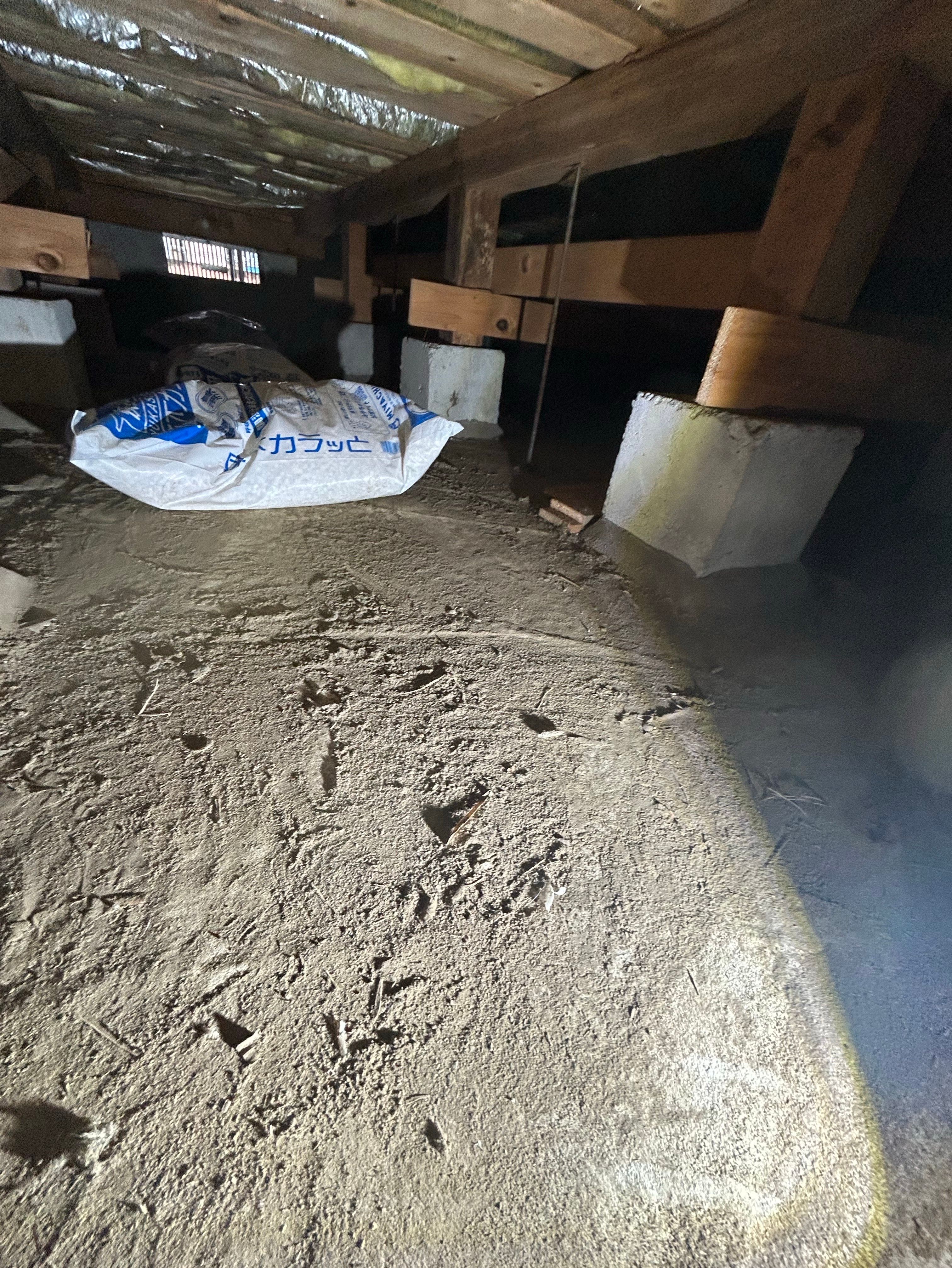 床下の出入口から遠い場所から調湿剤を丁寧に敷いていきます😷✨