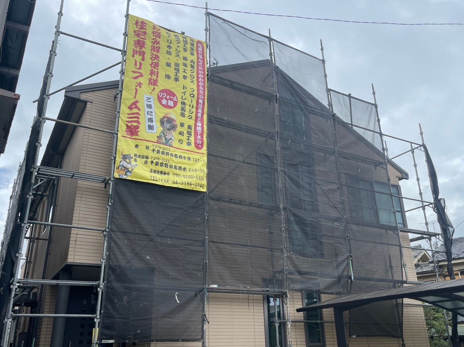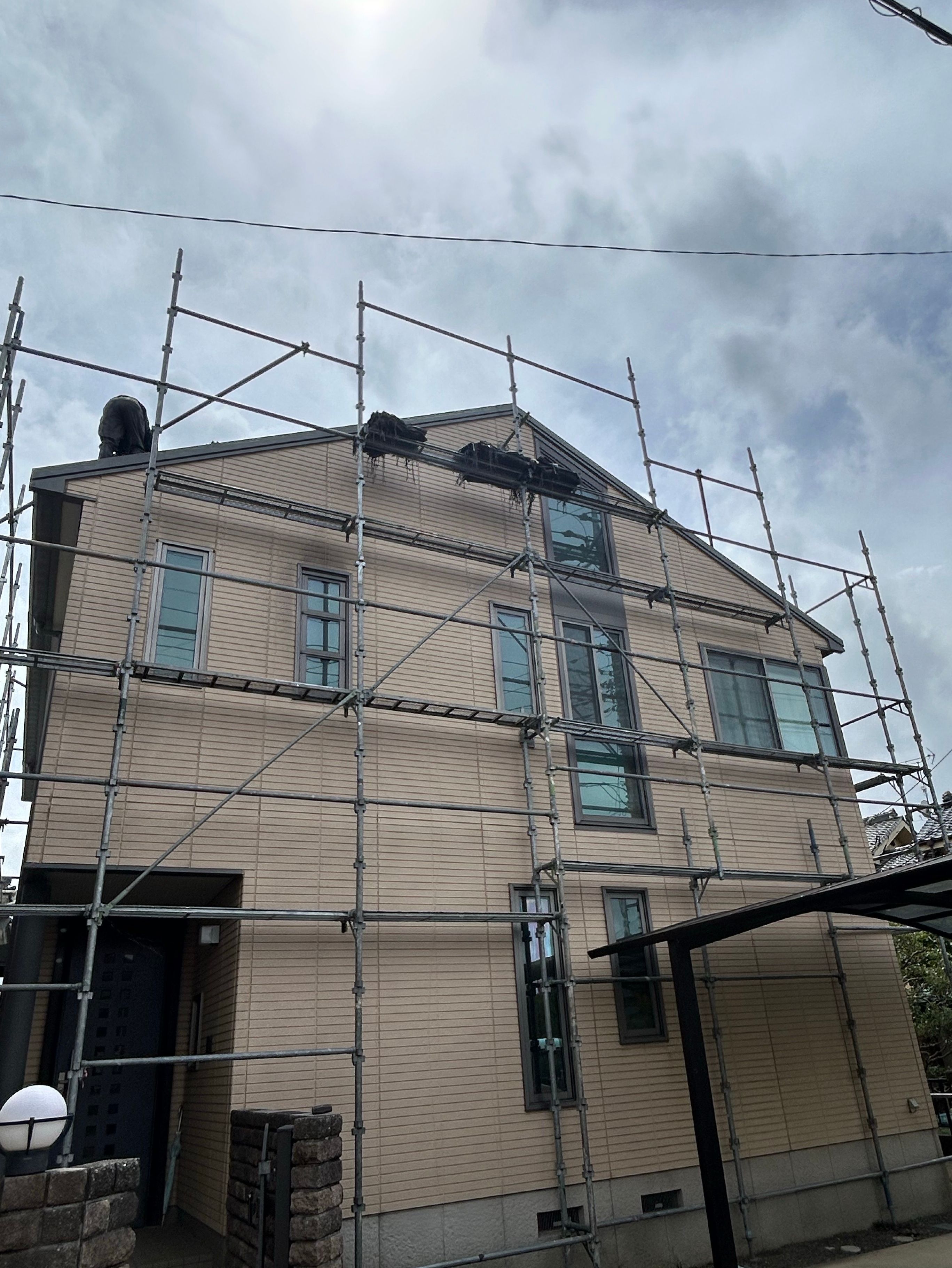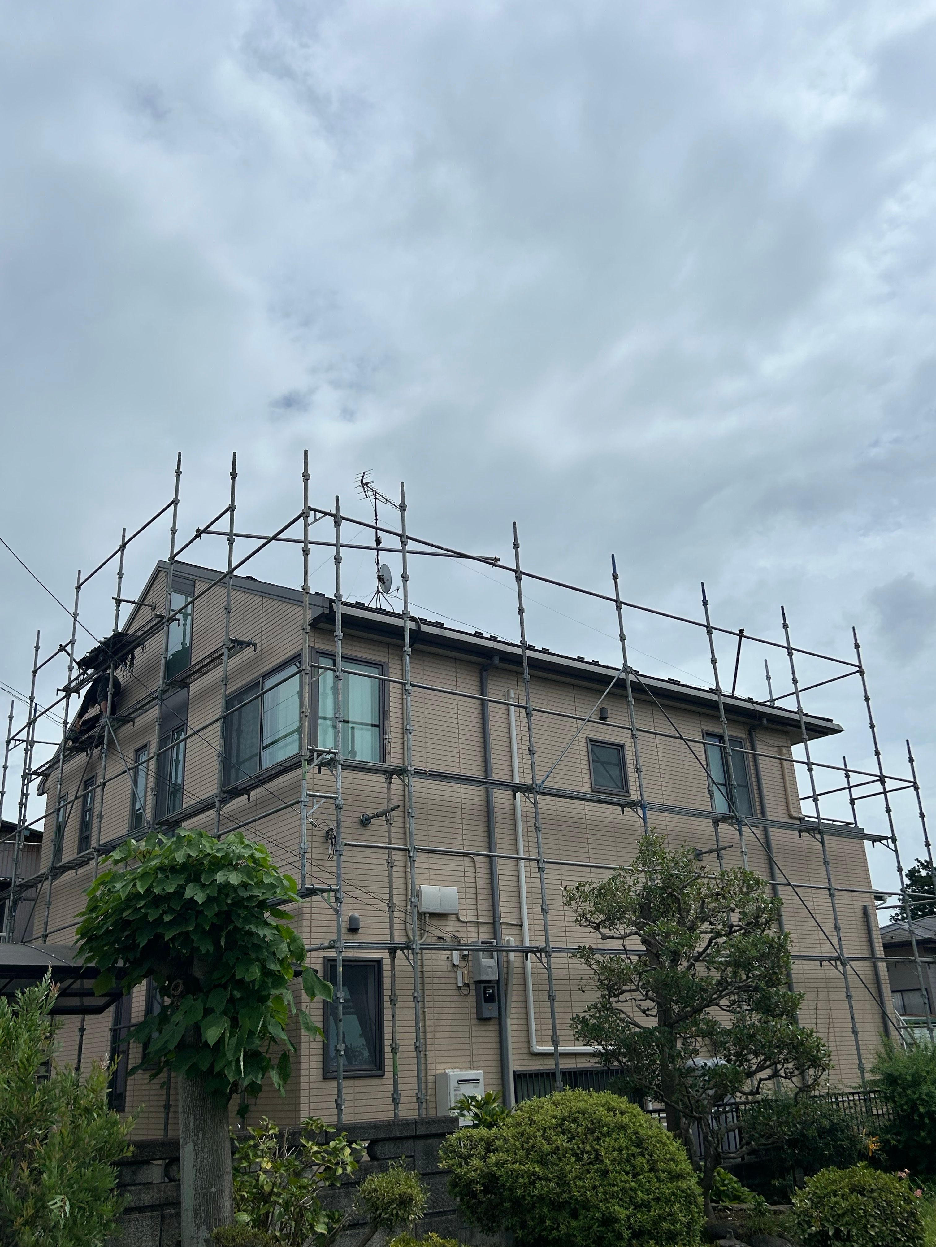 天気が微妙で雨が降ったり止んだりでしたが、足場職人さんが頑張って施工して頂きました⚒️