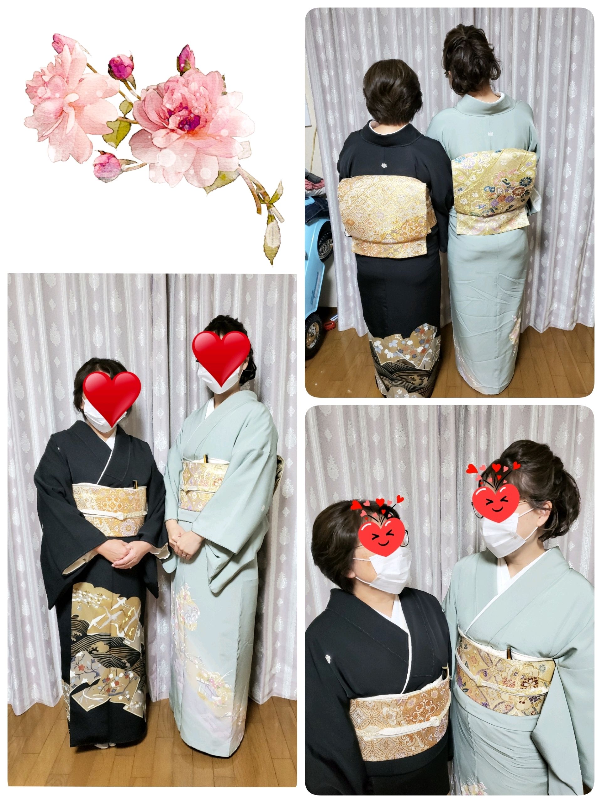 お母様の留袖と娘様の色留袖。