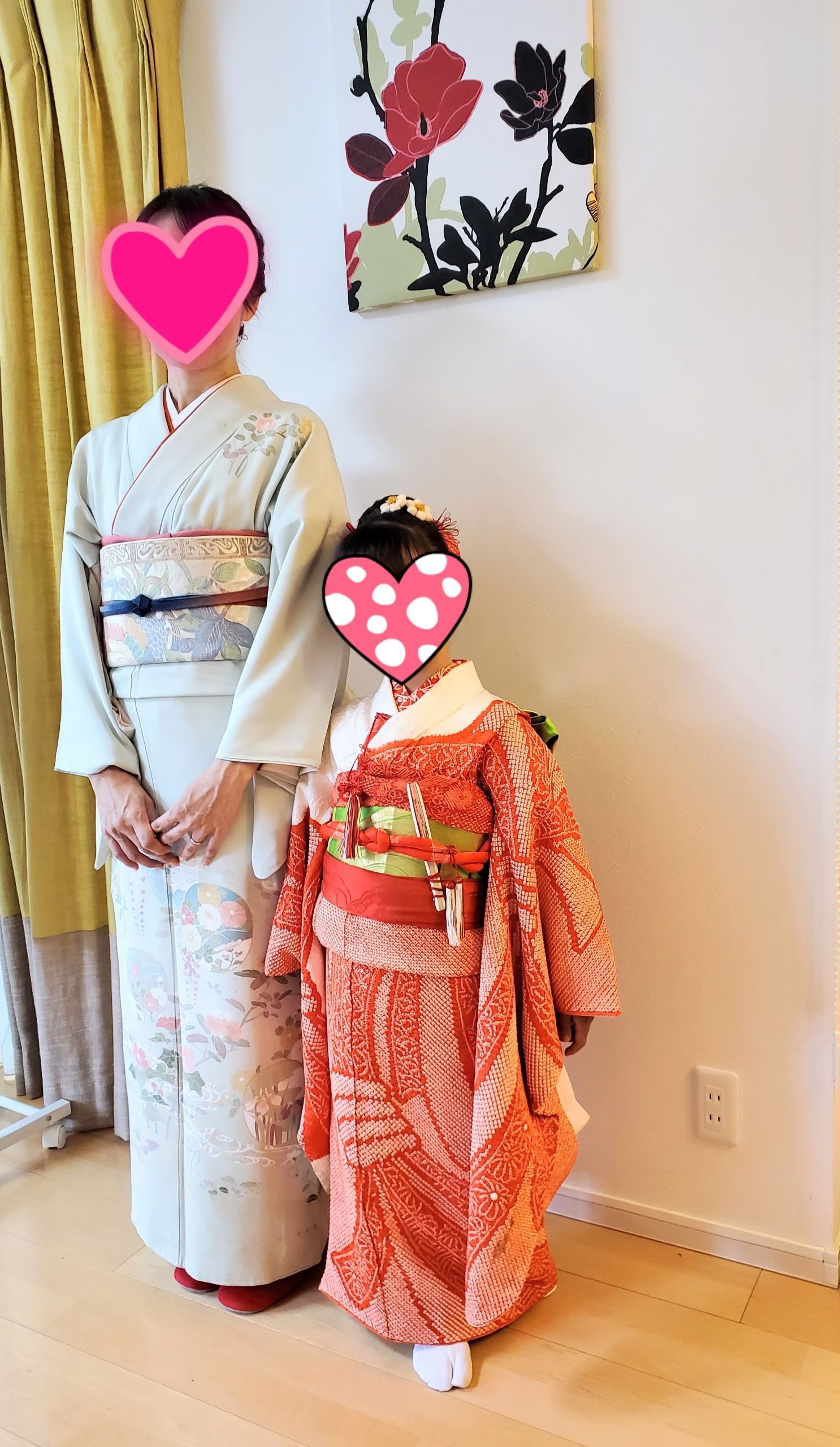 可愛らしさの中に大人っぽさも…七歳の御祝い。お母様と並んで素敵。高い位置で結ったお団子に髪飾りがとても可愛らしくて。