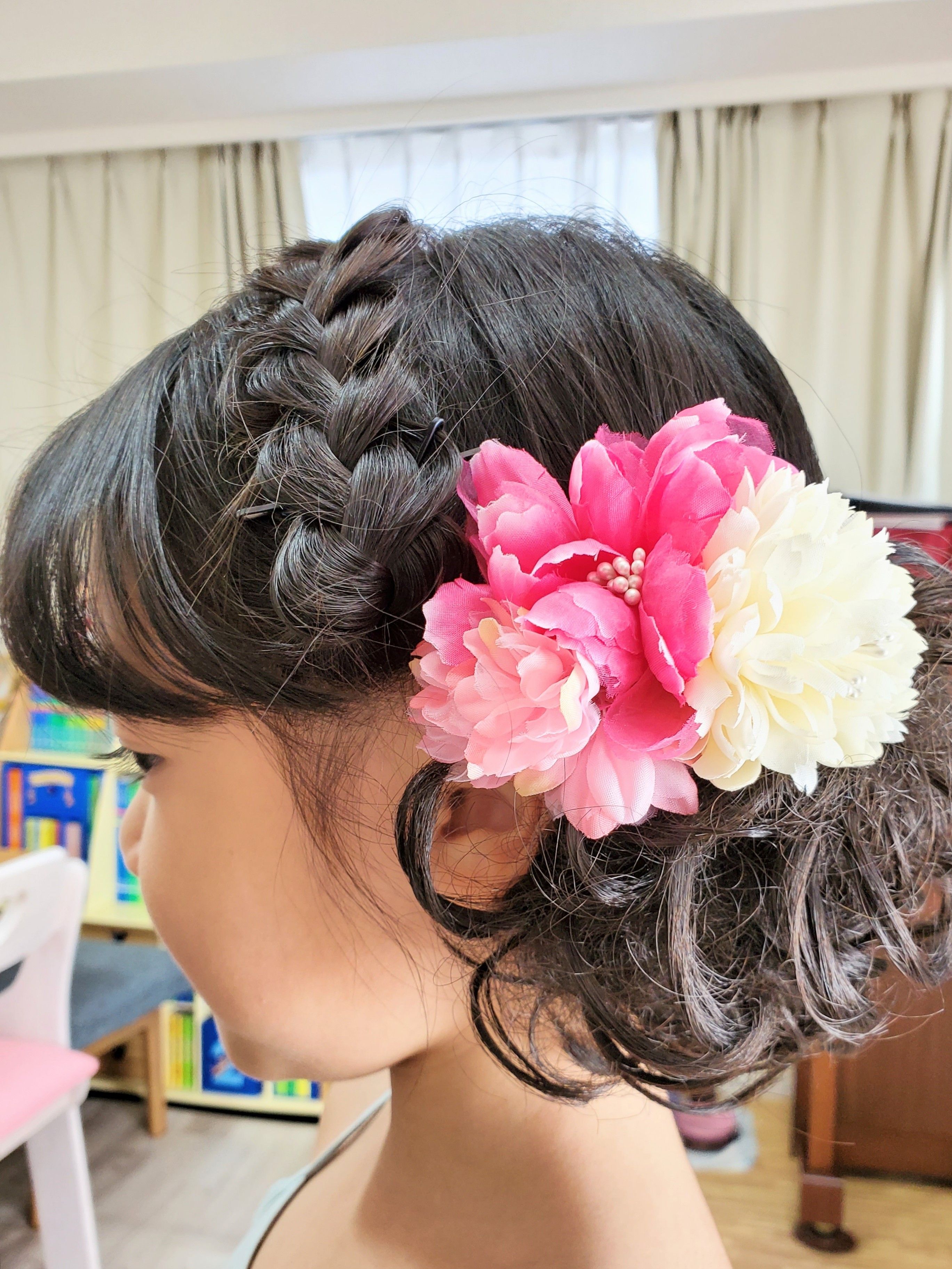三つ編みとつけ毛でふんわり…洋風な感じもとっても可愛いです。