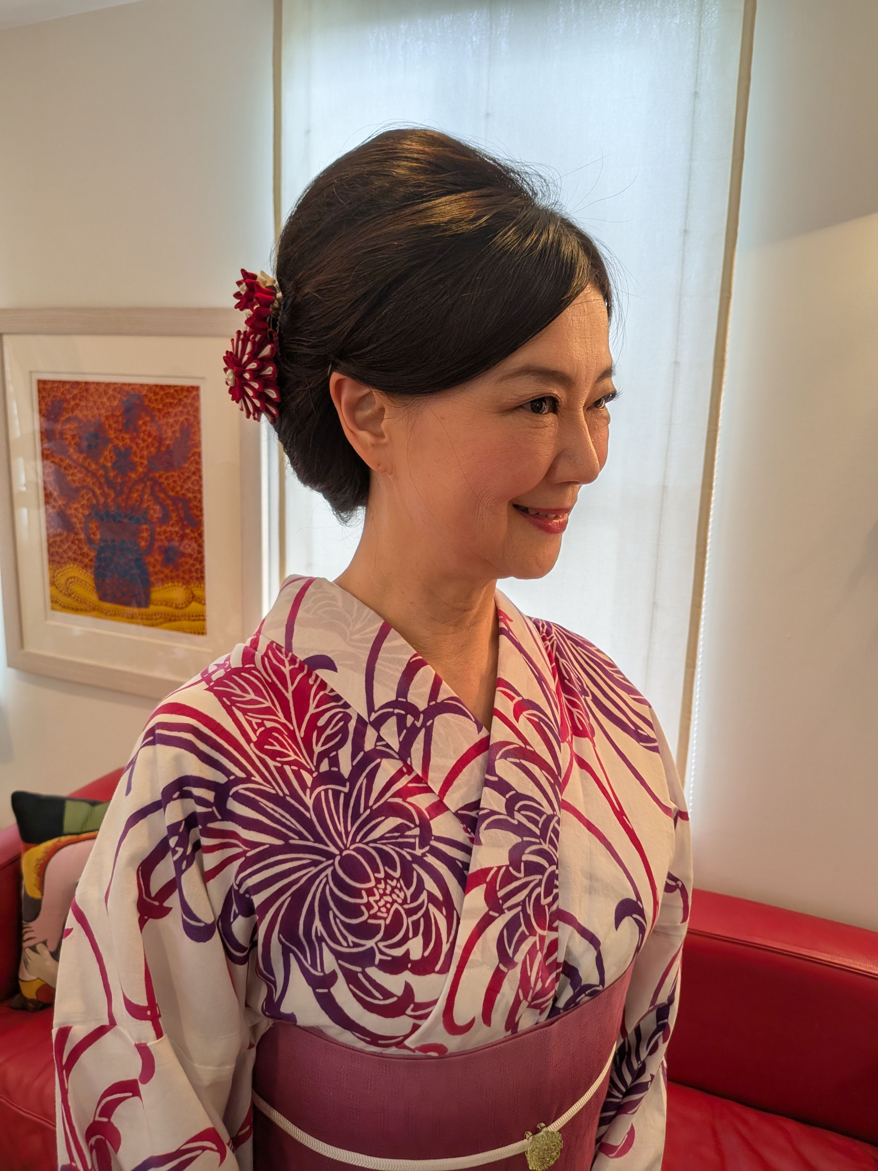 浴衣のお着付けとヘアアレンジをさせていただきました。