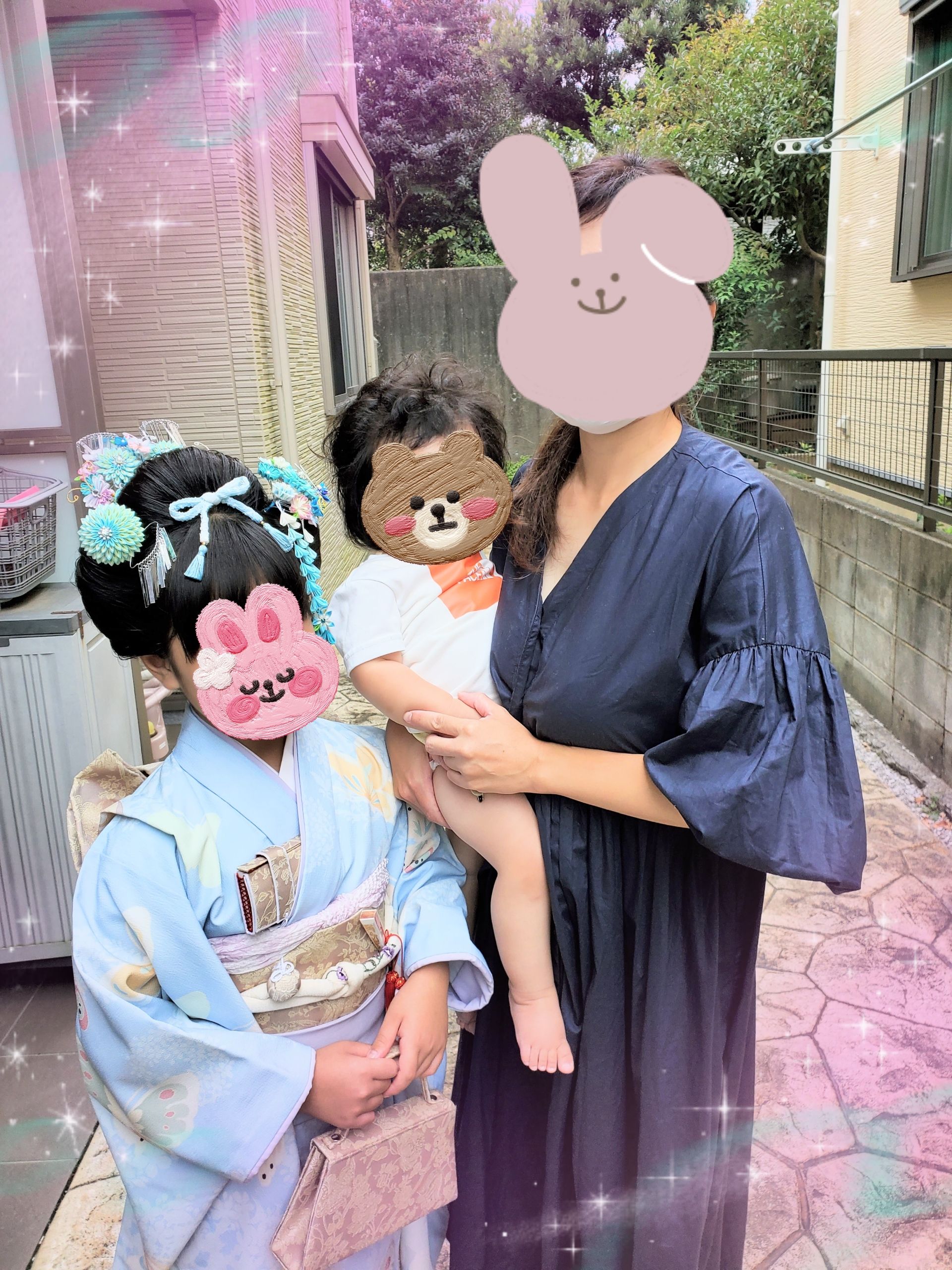 旦那様のお母様が手作りで作ってくださった縮緬ブルーのお飾りが泣かないよう一生懸命頑張りました😂💦