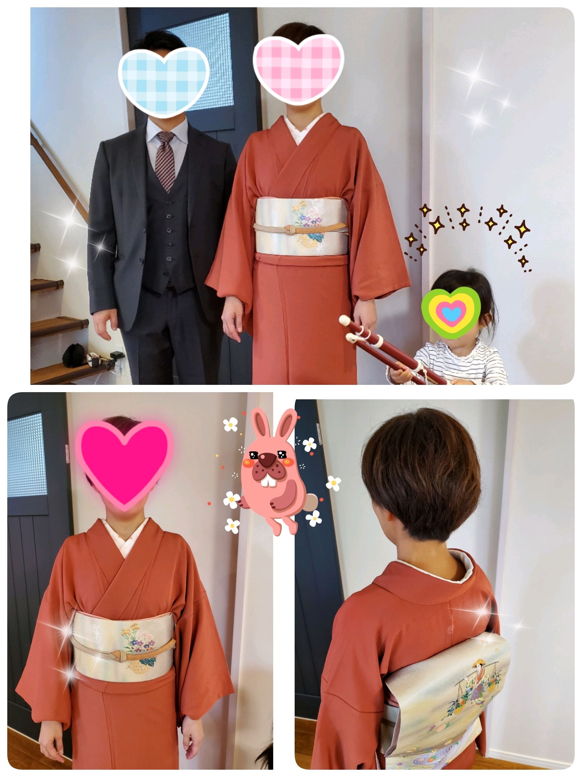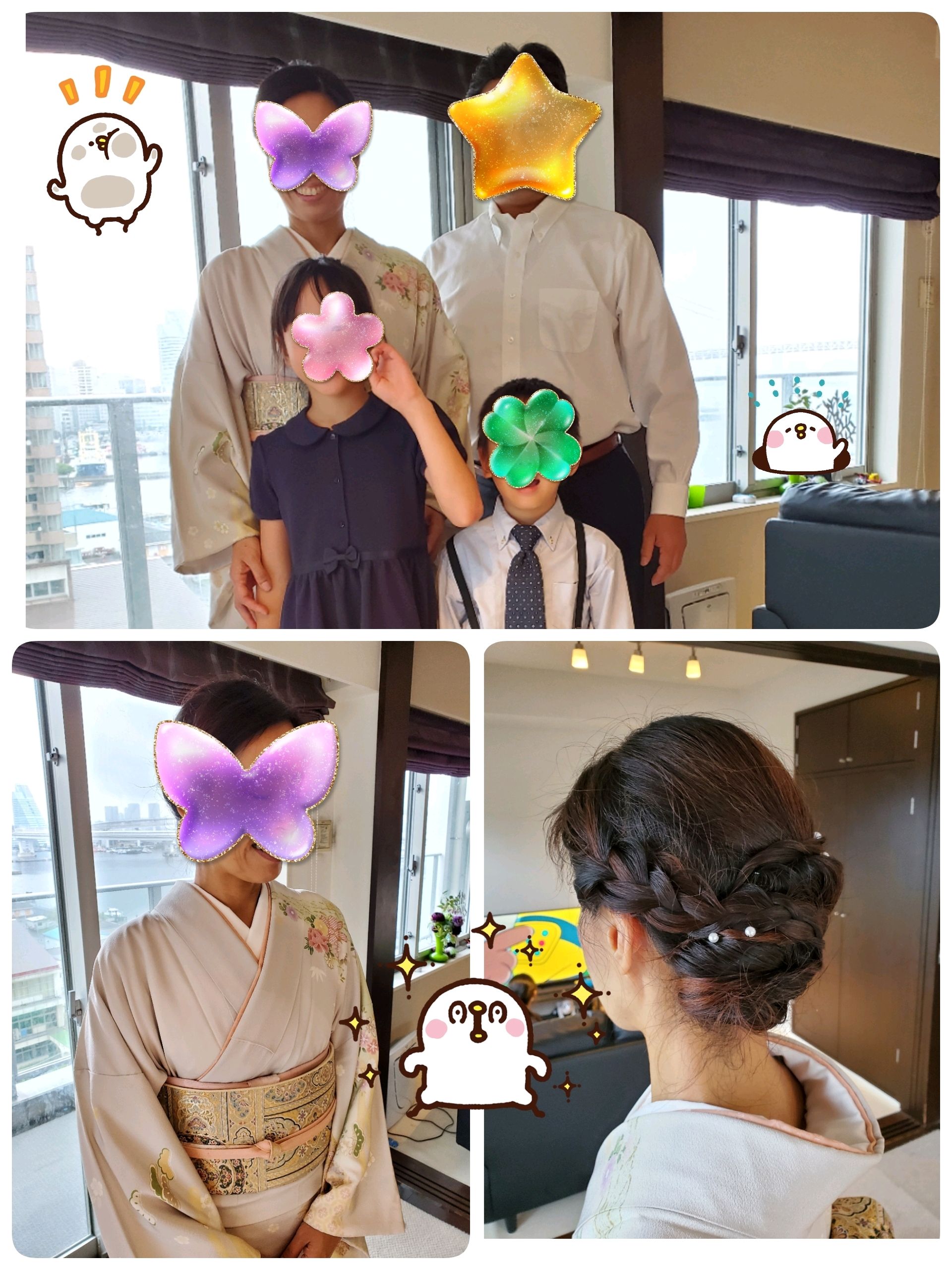 スラッとした着物美人のママ。髪の毛が長くて綺麗で…こちらもパパがシャキッとスーツ姿で貫禄ありました🍀
