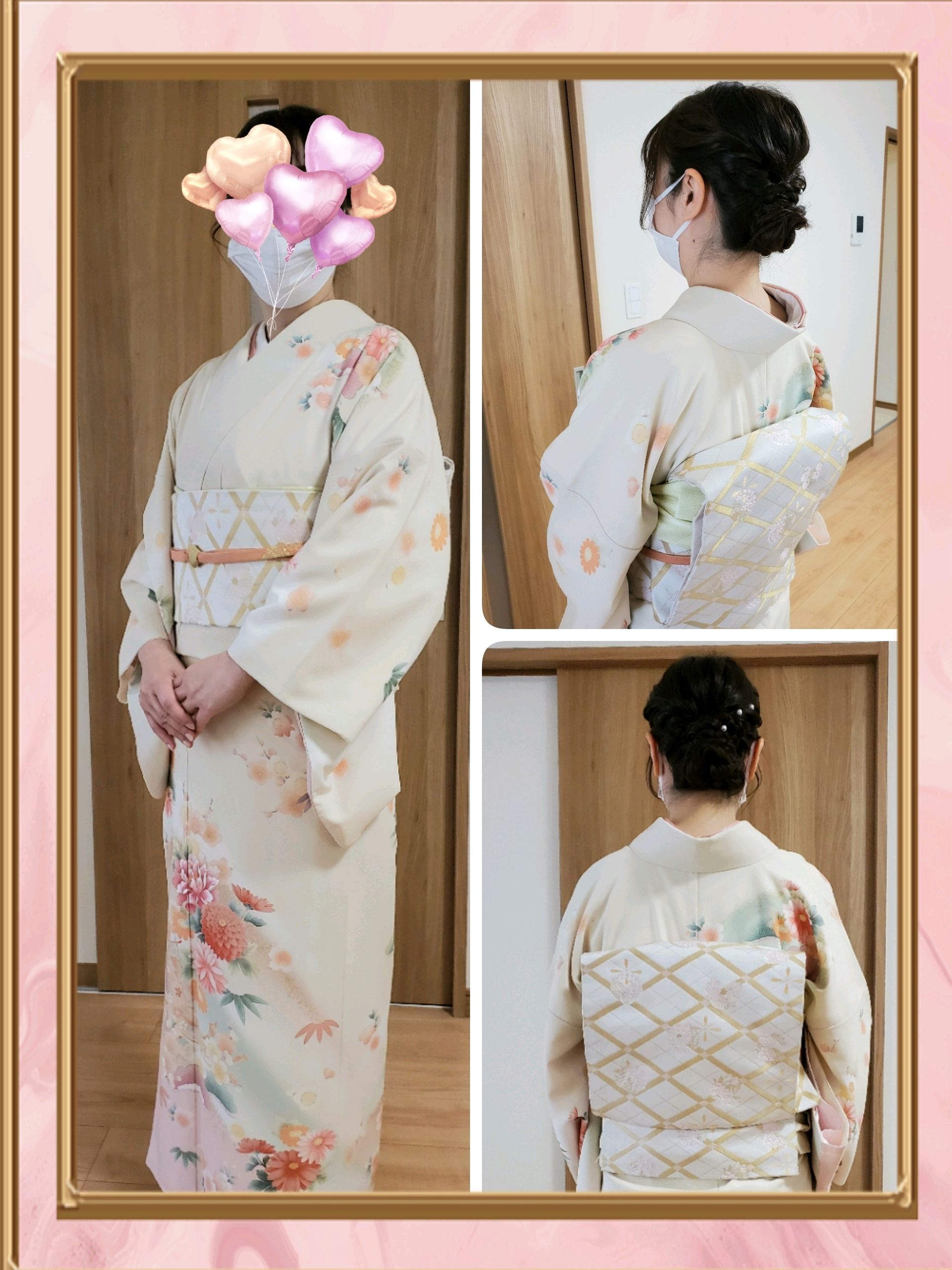 成人式のお嬢様の記念撮影に、お母様もお着物を…。