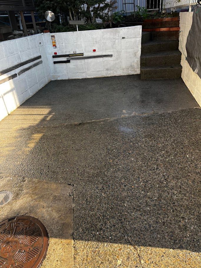外壁の洗浄のついでにサービスで 駐車場(土間)も洗浄 しました。