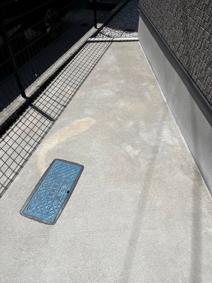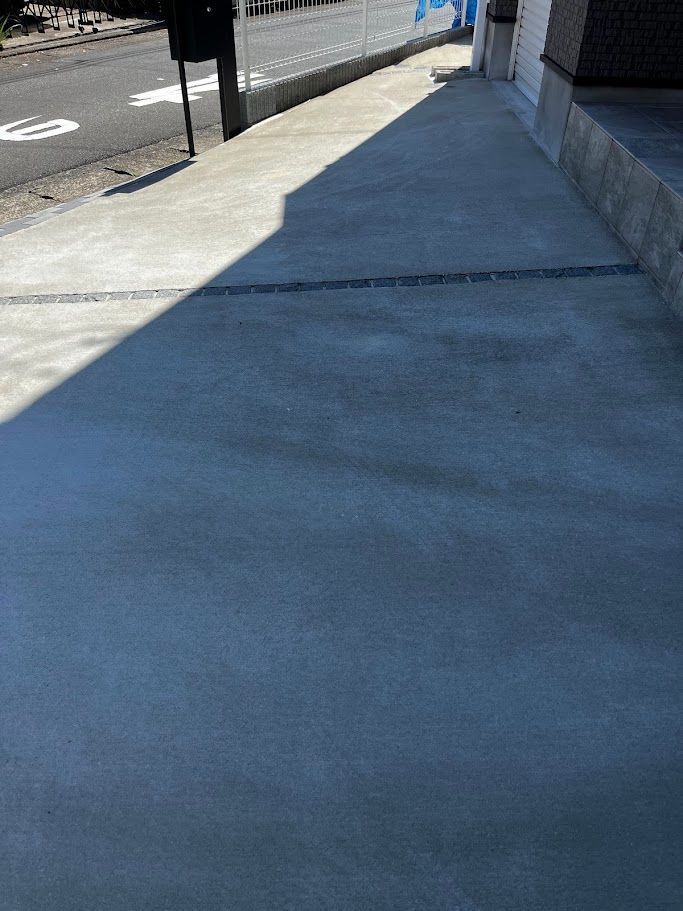 業務用の高圧洗浄機を使用し、コンクリート表面に付着した苔・カビ・黒ずみをしっかり洗浄。