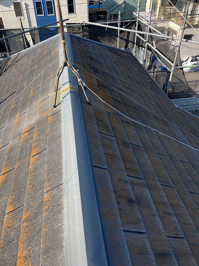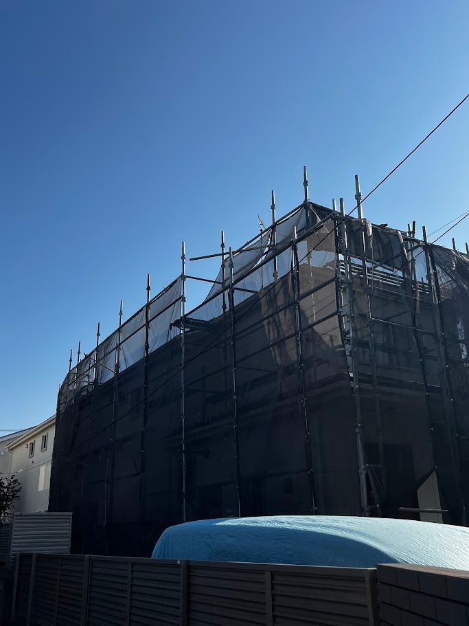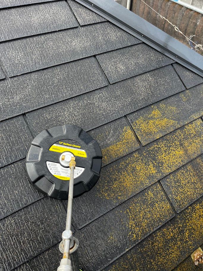 藤沢市で外壁と屋根の塗装工事がスタートしました! 本日は高圧洗浄を行いました🧼💦 汚れの落ち方って、見てると気持ちいいんですよね。 コケ・黒ずみ・雨だれをしっかり落として、次の下地作りに進みます。