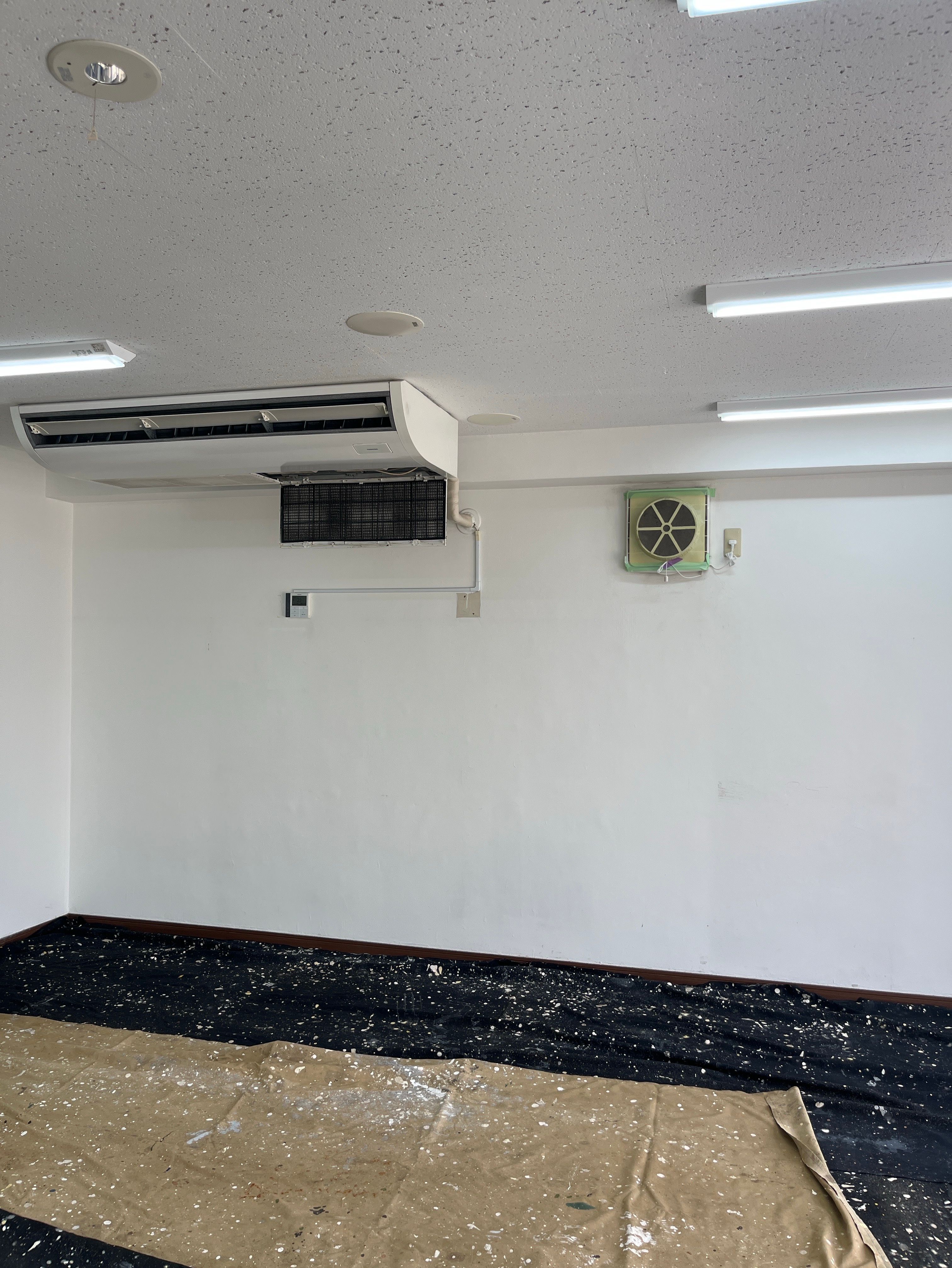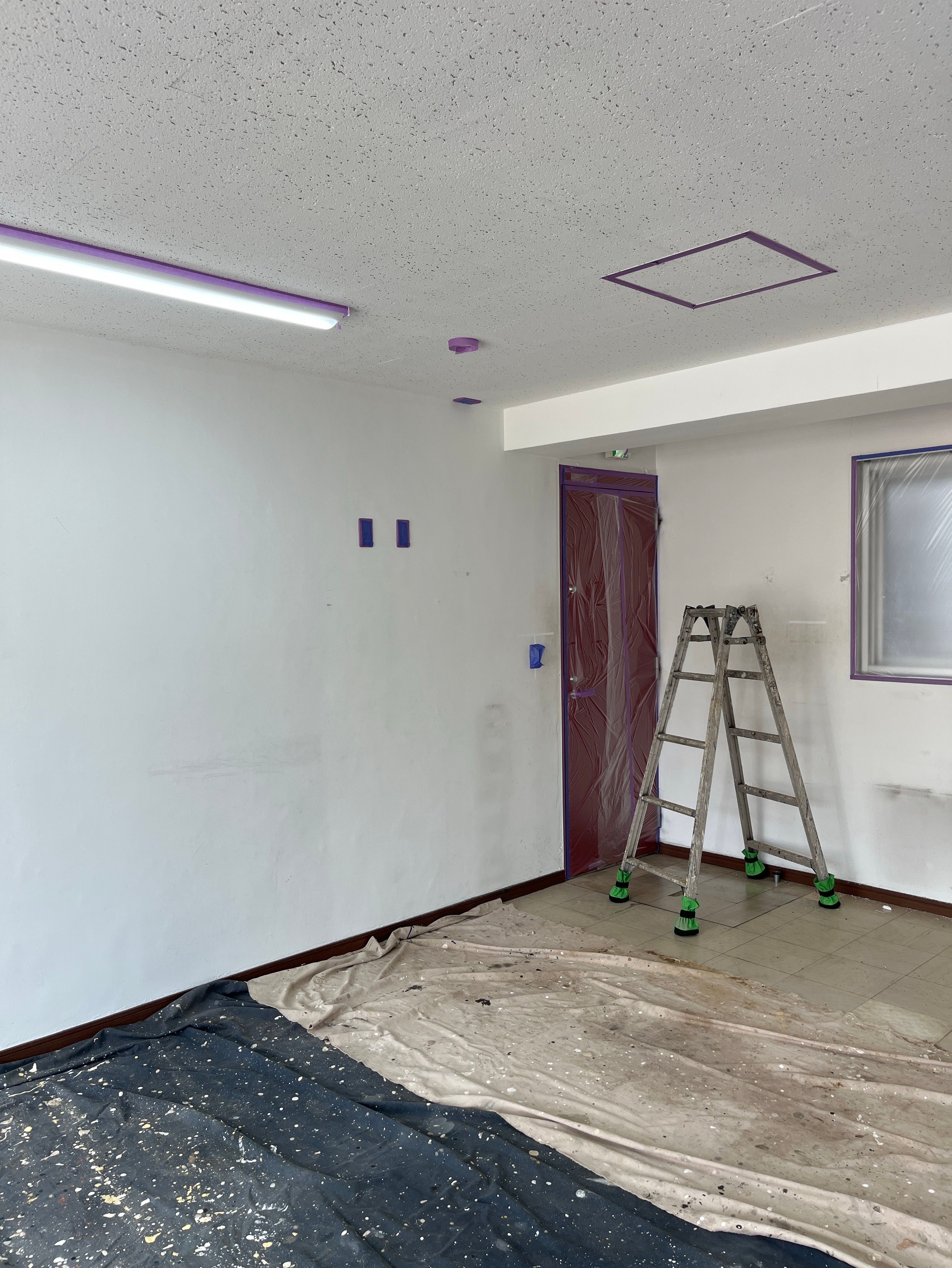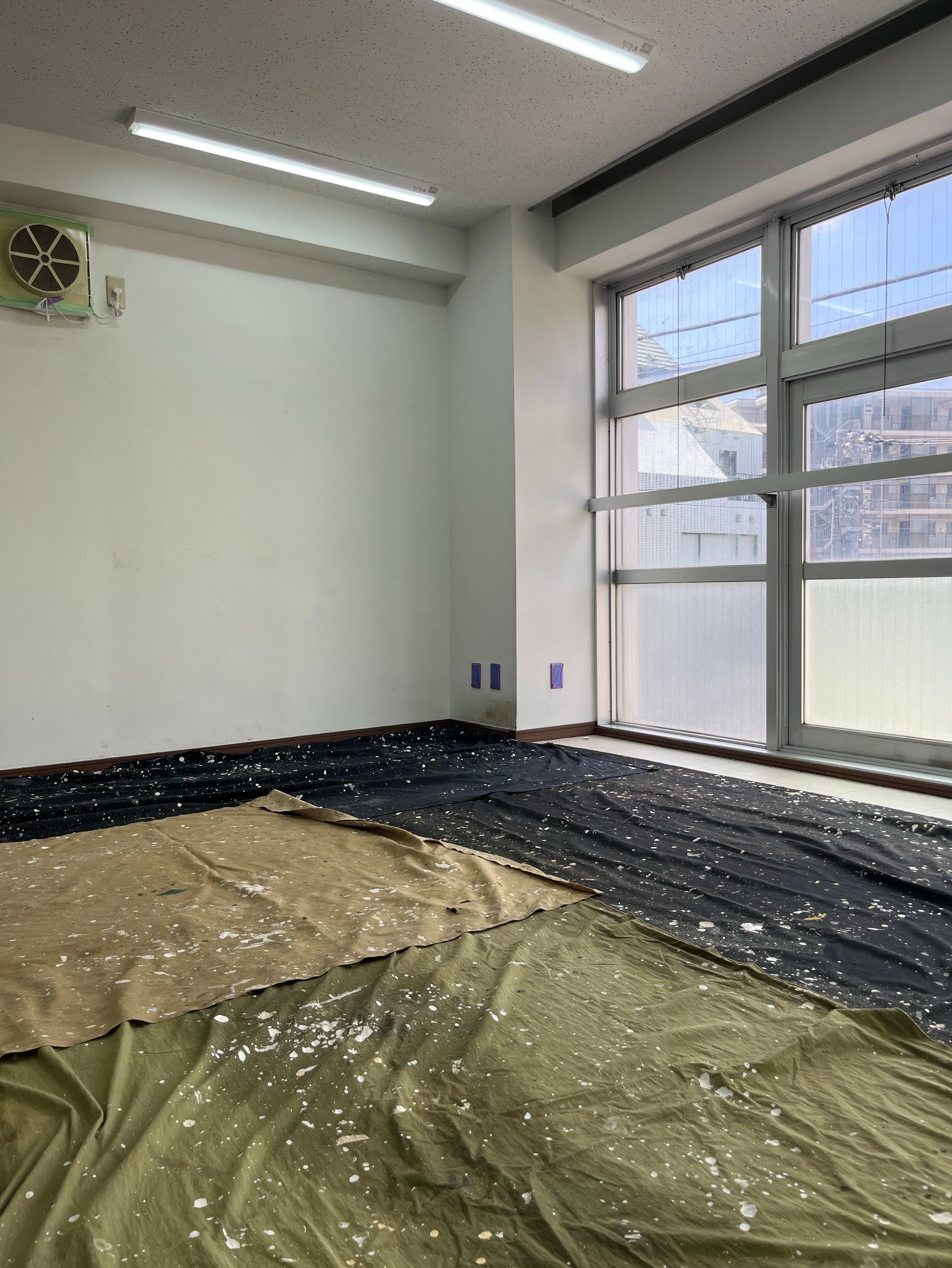 今日は日曜日ですが、店舗の塗装工事を行っています。まずは一番大事な養生作業です!サッシまわり、照明部分など、しっかり保護してから塗装に入ります。明日からはいよいよ塗りの工程に入る予定です!丁寧に仕上げて、気持ちよく使える空間にしていきます(^^)