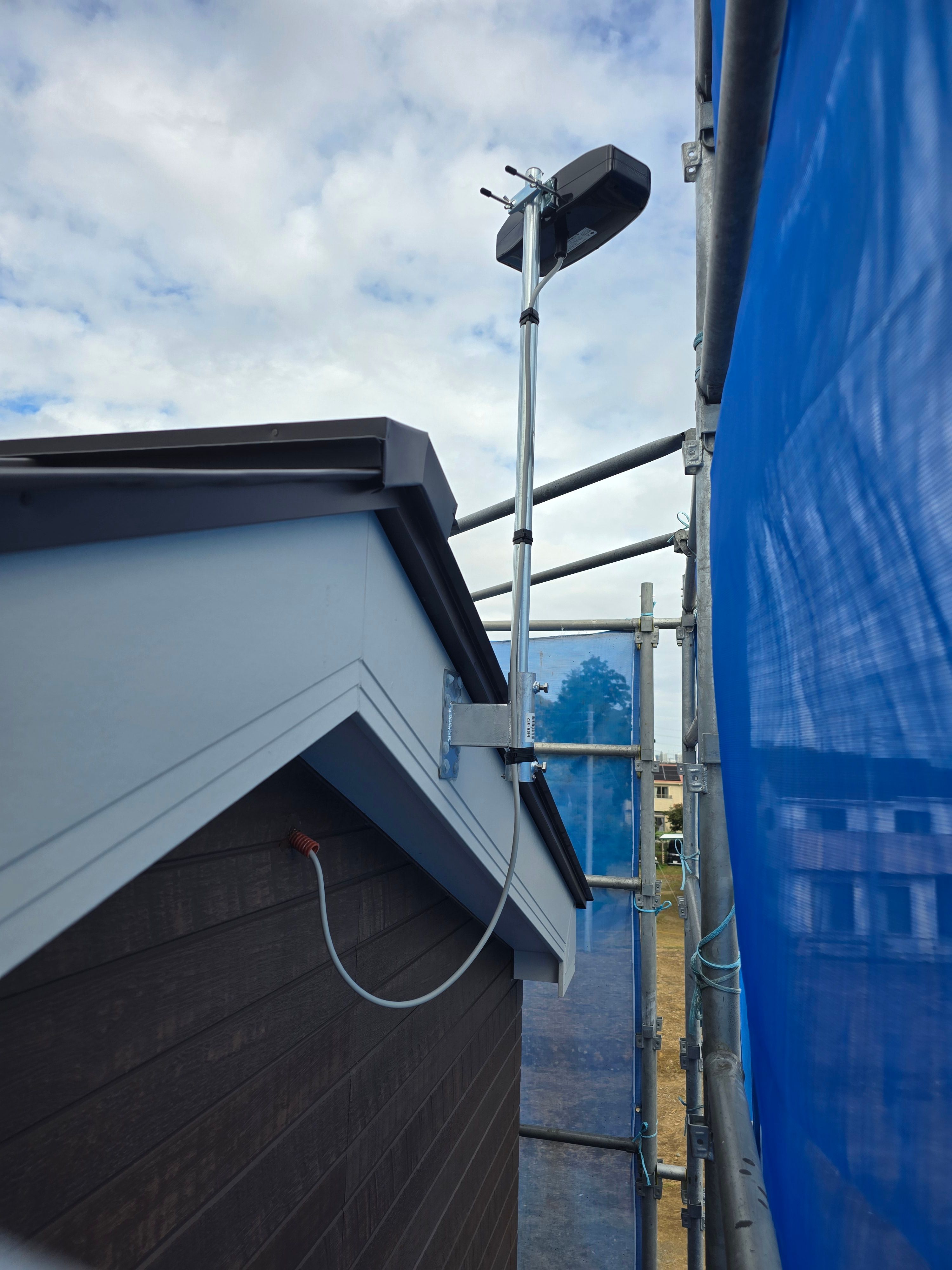建築中のため、アンテナ設置のみ行い、引き渡し後ブースター設置、調整を行う予定です。