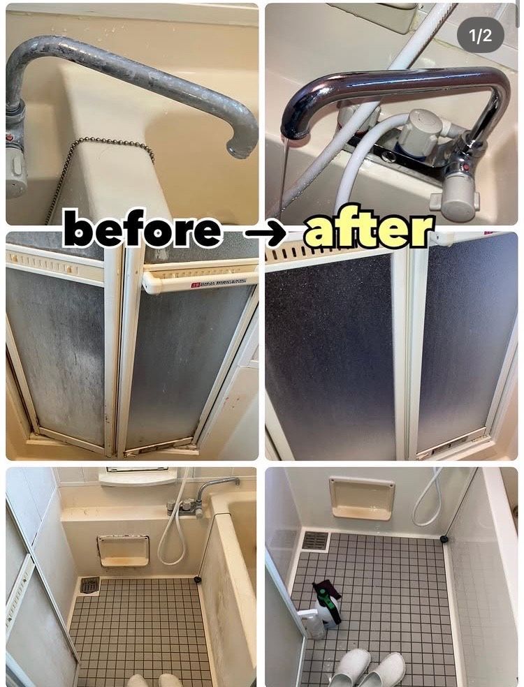 創業当初からのリピーター様で、お友達にも当店を紹介してくださり、感謝の気持ちを込めて、気になると仰っていた皮脂汚れ、コーキング部分のカビ取りをしっかりと✨