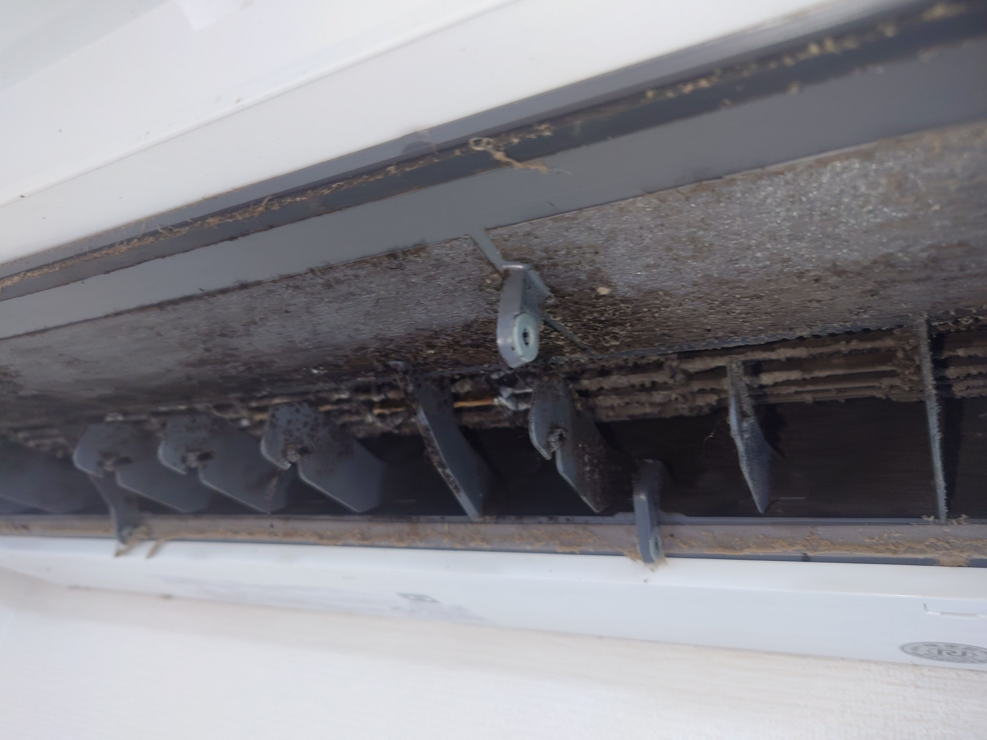 5年間クリーニング無しエアコンの効きが悪いエアコンが臭いエアコンから何か飛んできたこの話を聞いて大分県速見郡日出町へ…この画像のエアコンを見て…言葉がでない…洗浄回数3回もっとエアコンを大事にしてほしいです…