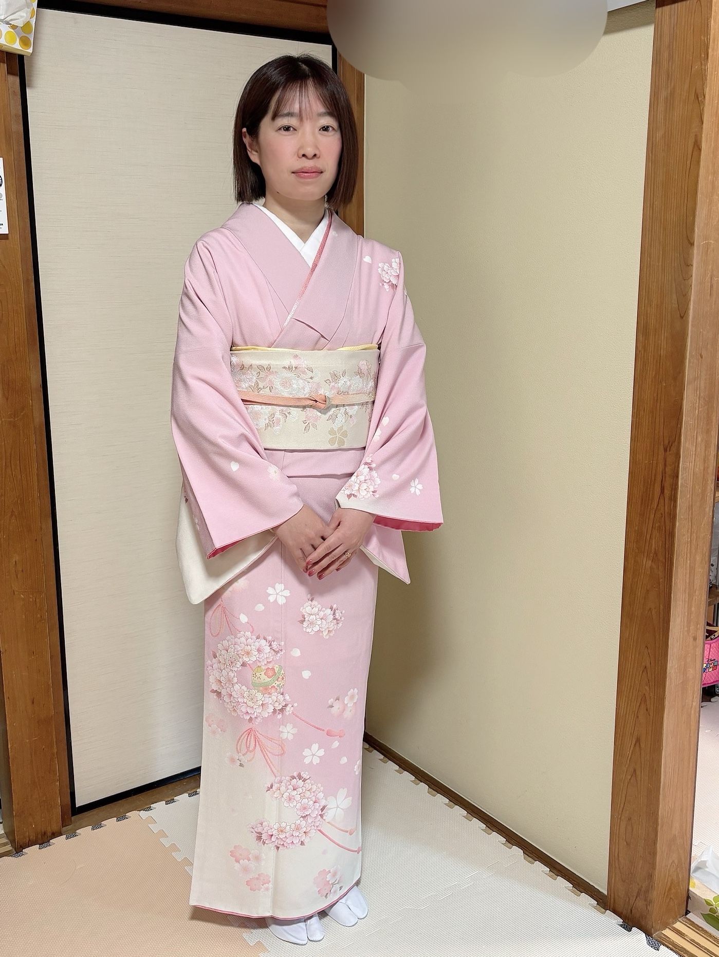 帯や小物も統一感があってまるでワンピースみたいに可愛らしいお着物です^ ^