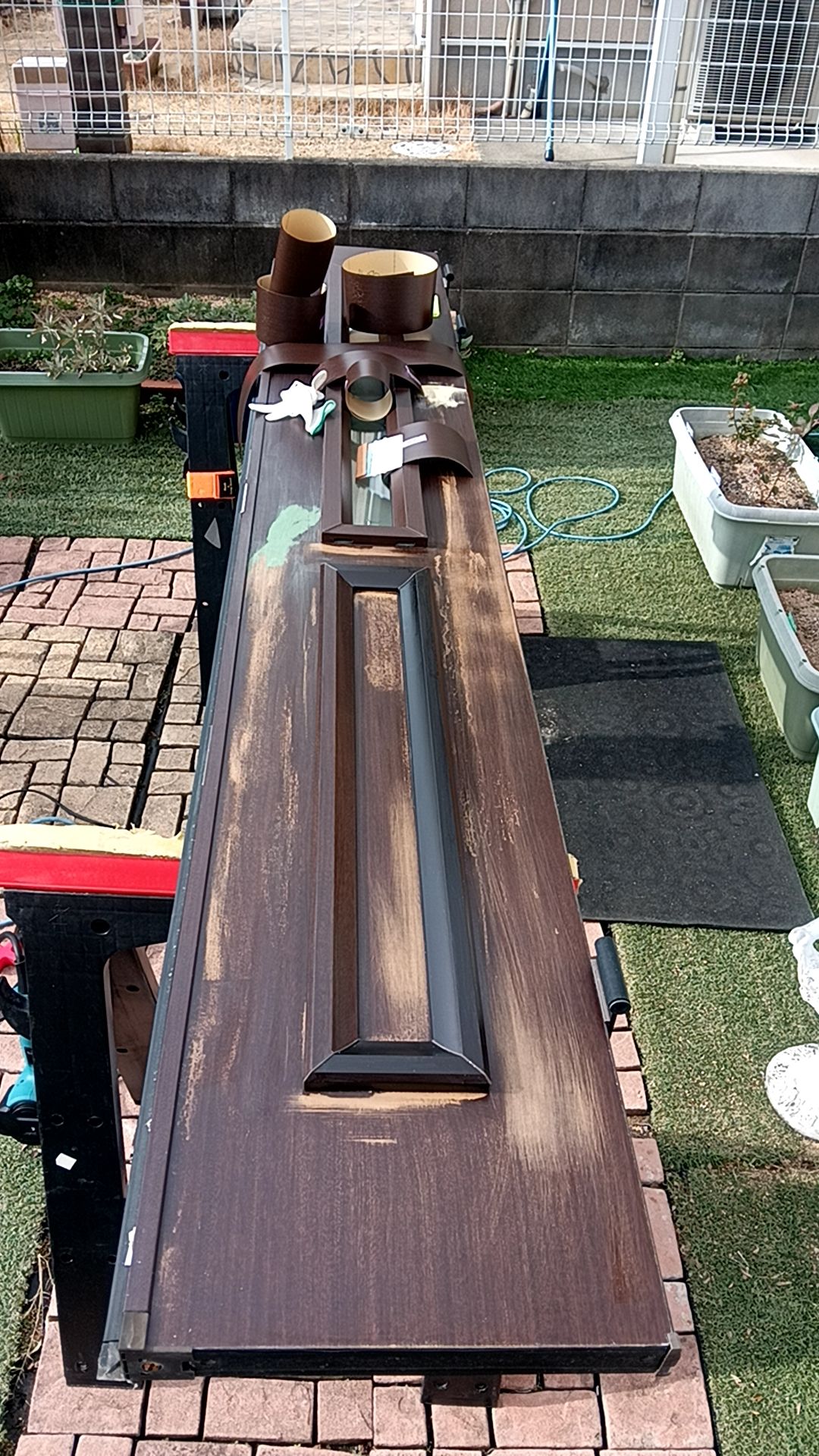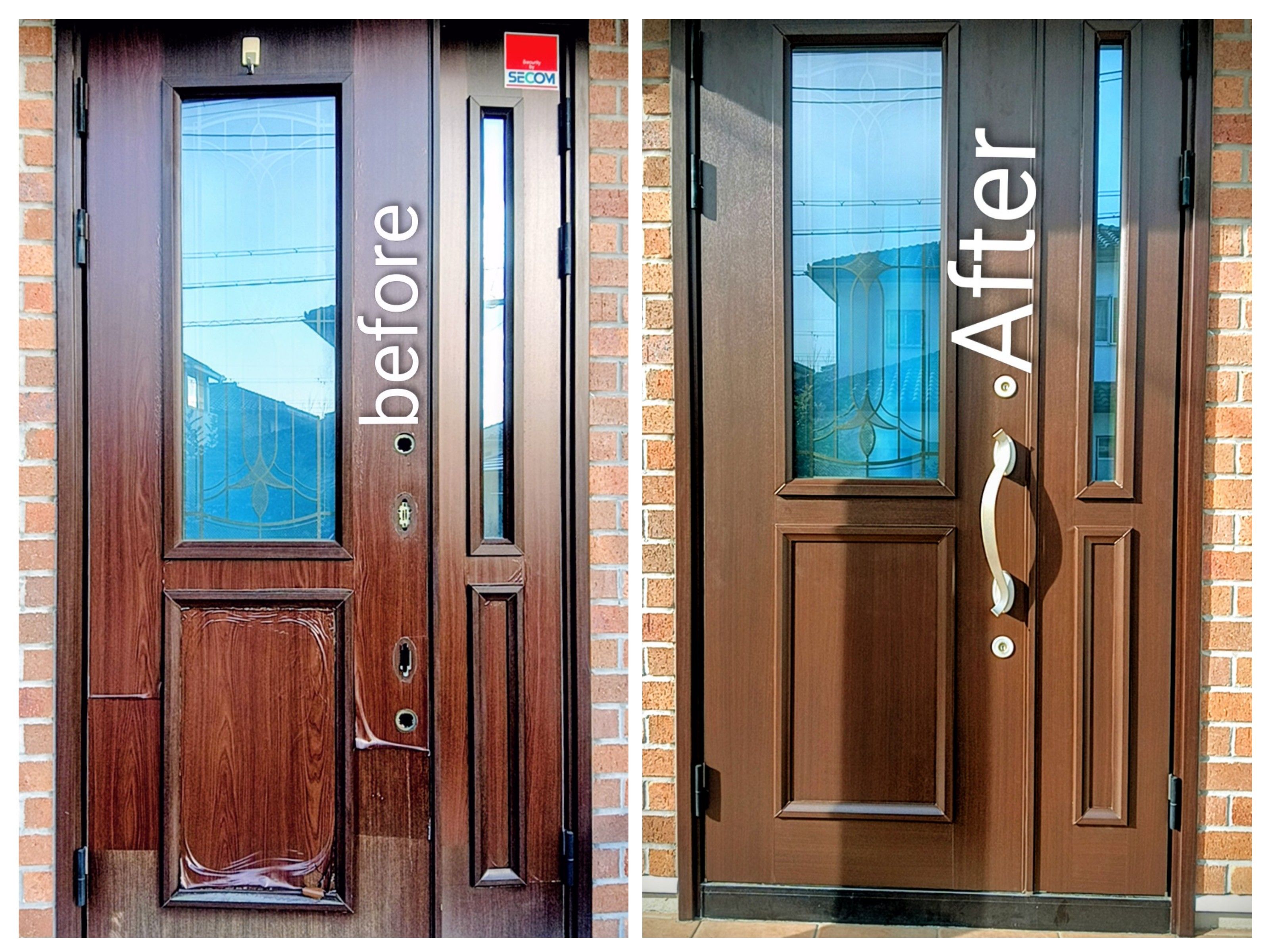 宝塚市 O様邸長年の紫外線!雨風等で傷んで来た玄関ドアをダイノックシートで装飾させて頂きました!