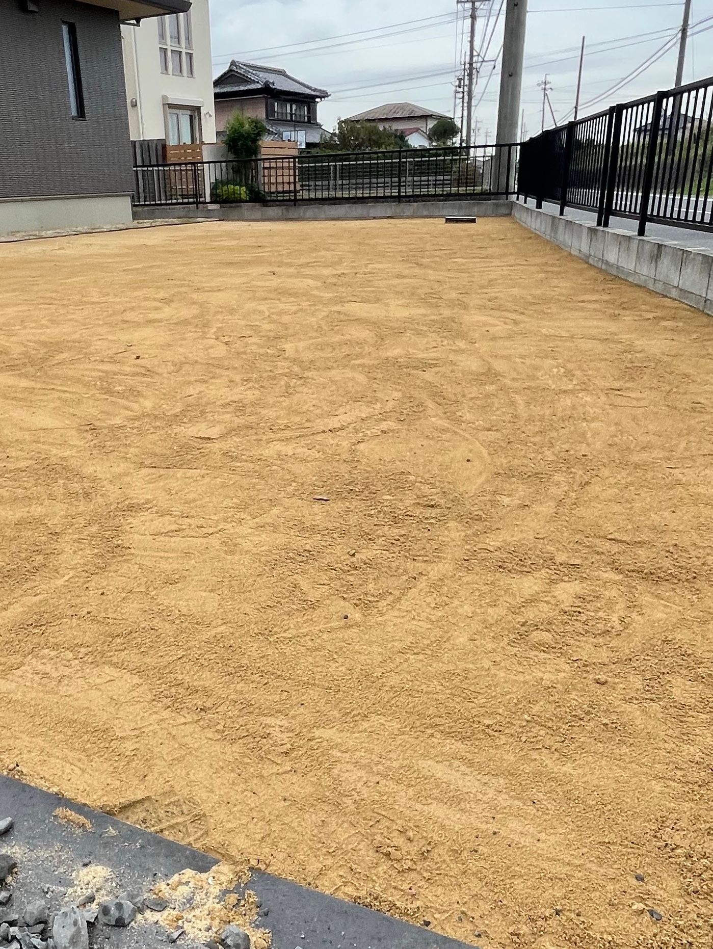 山砂を約15t入れ下地整地しました。
