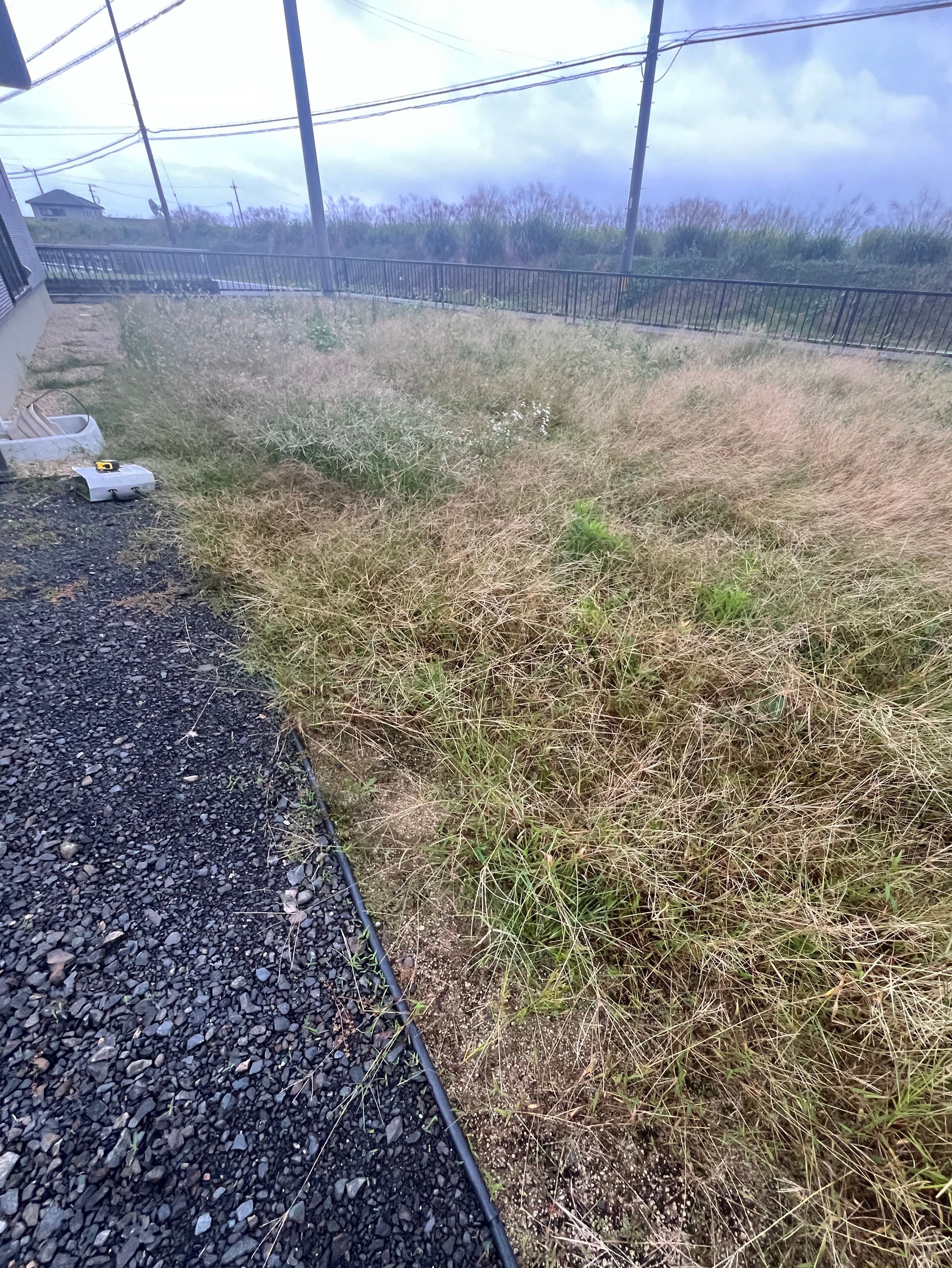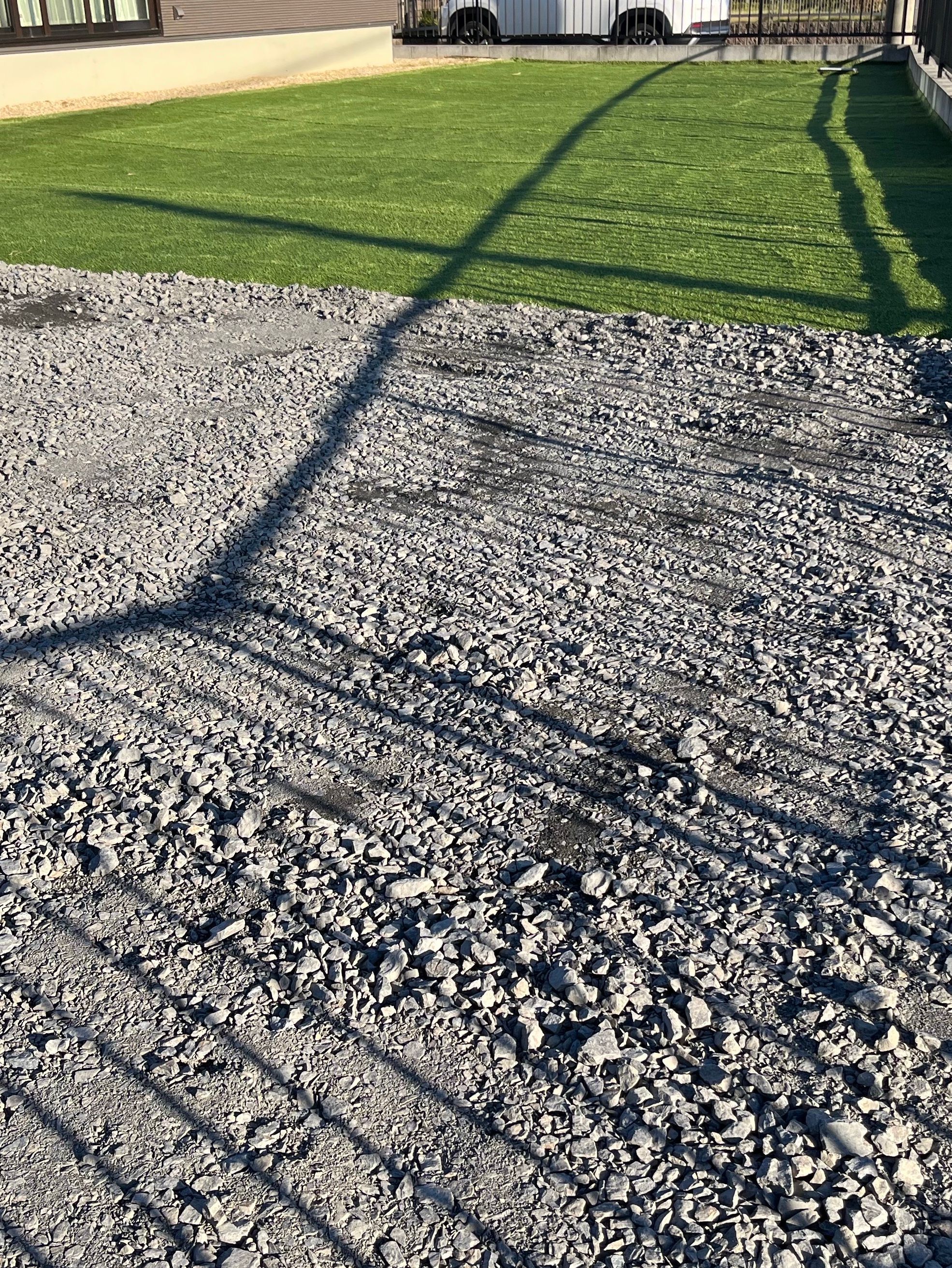 元々は、畑をされていたそうですが手つかずになり草が大変だと人工芝と砂利に。