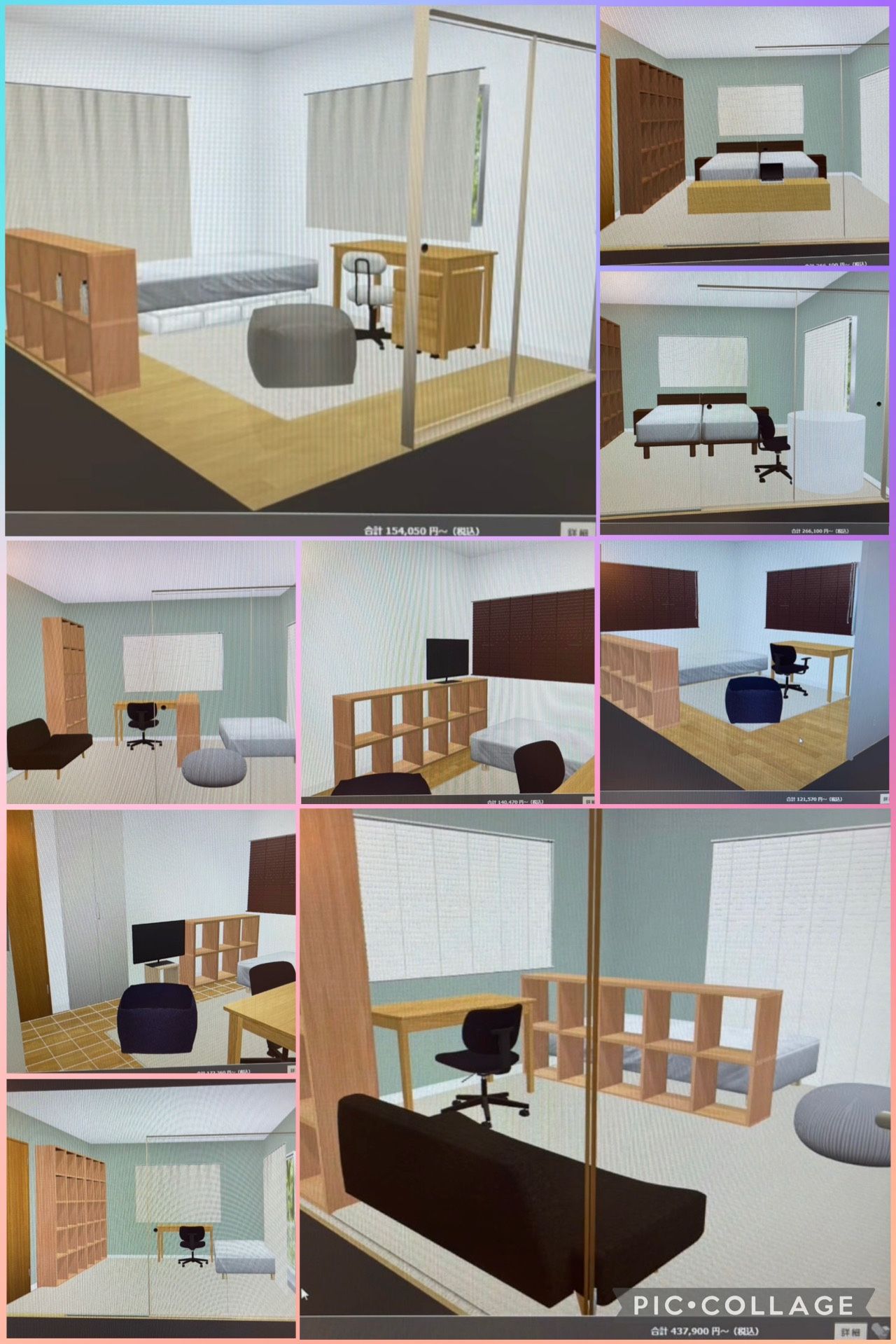 何パターンもの家具の配置を
