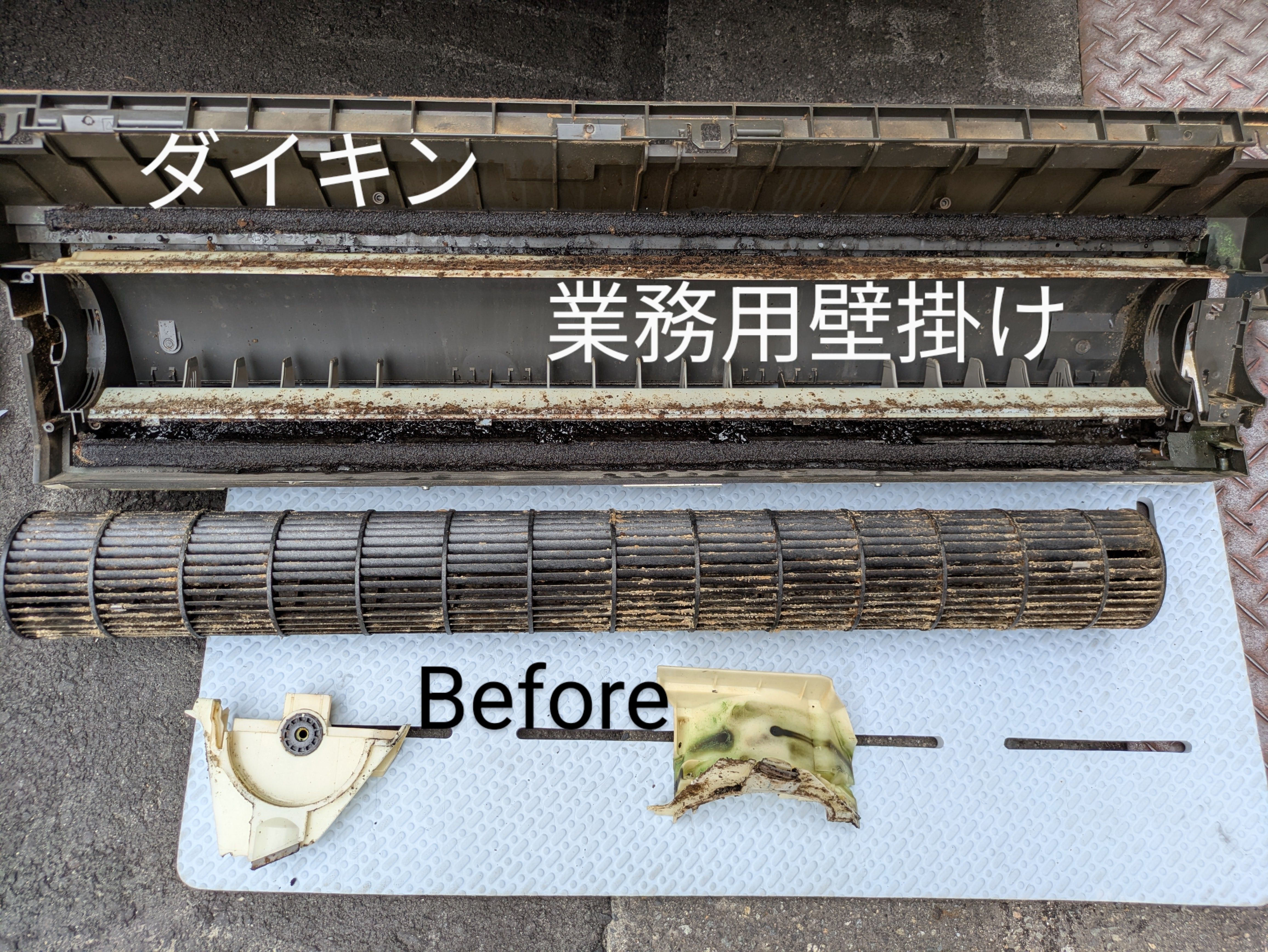 いつもお世話になっているケーキ屋さんのエアコンをクリーニングさせていただきました。夏場は日中夜間常に稼働させているそうです。数日前から水漏れしているということで、背抜き完全分解で対応させていただきました。水漏れも改善し、お喜びいただけました。ありがとうございました。